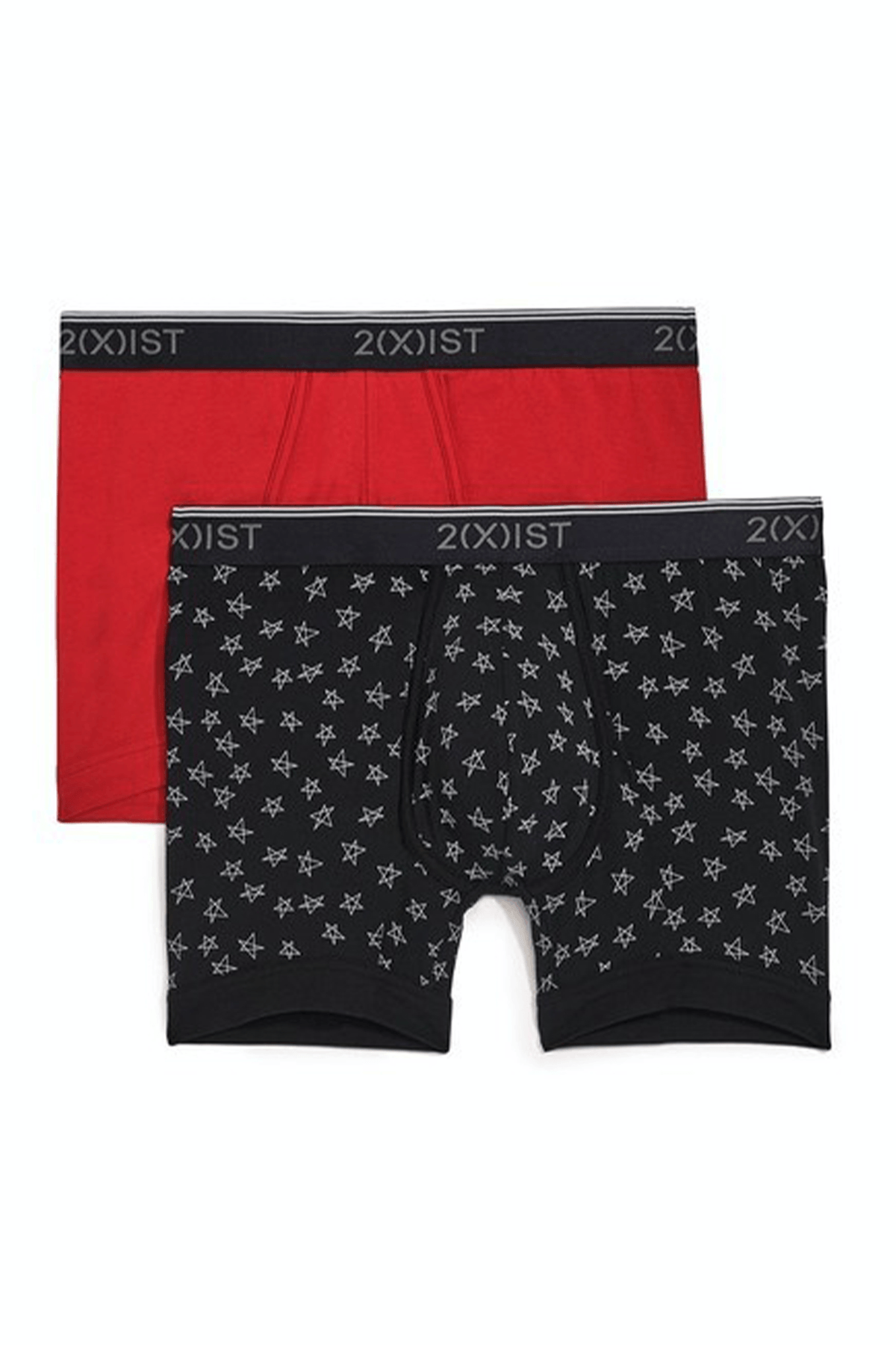 2(X)IST Hand Drawn Star/Salsa Red Cotton Stretch Boxer Brief 2-Pack