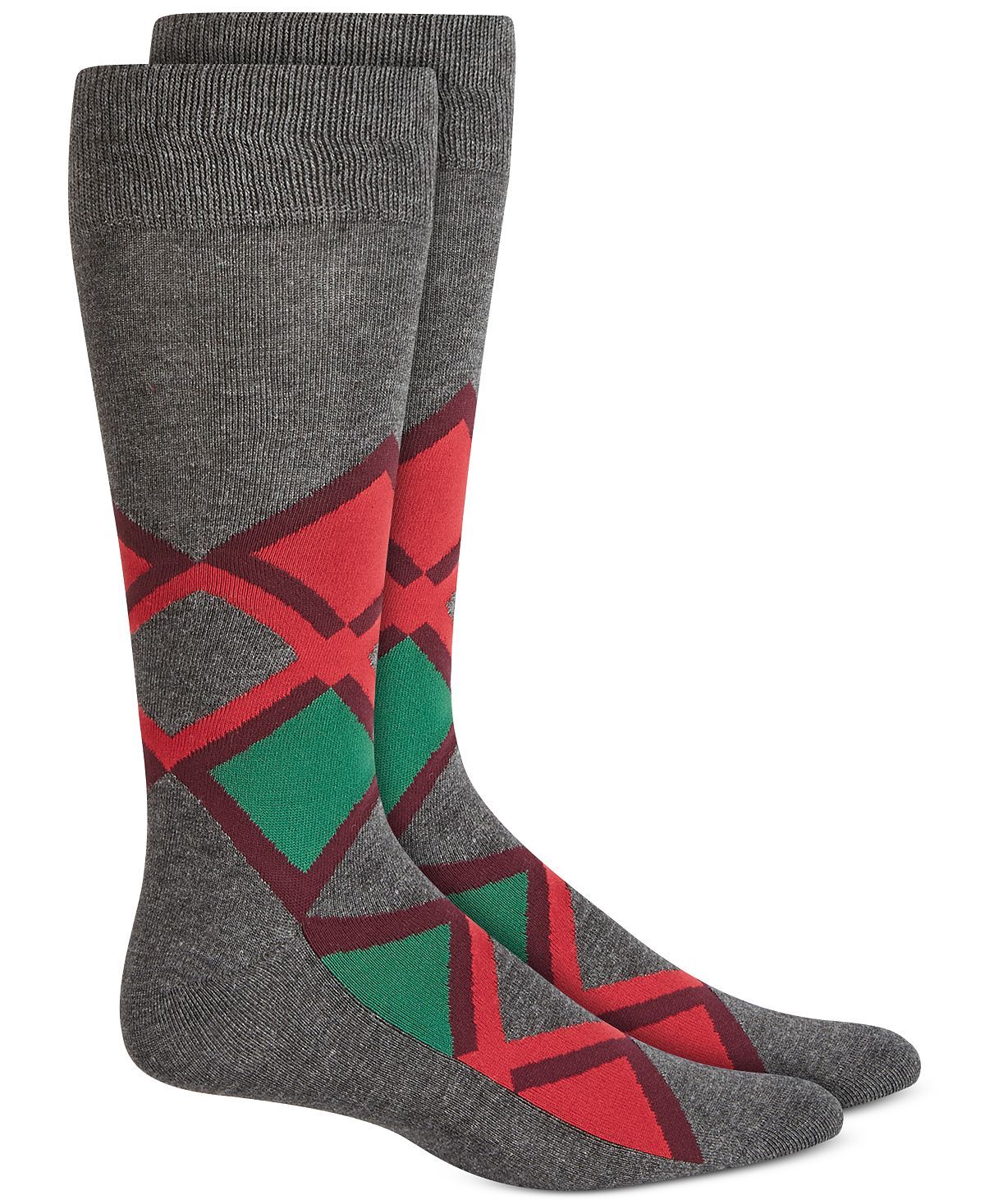 Alfani Argyle Socks Grey Red