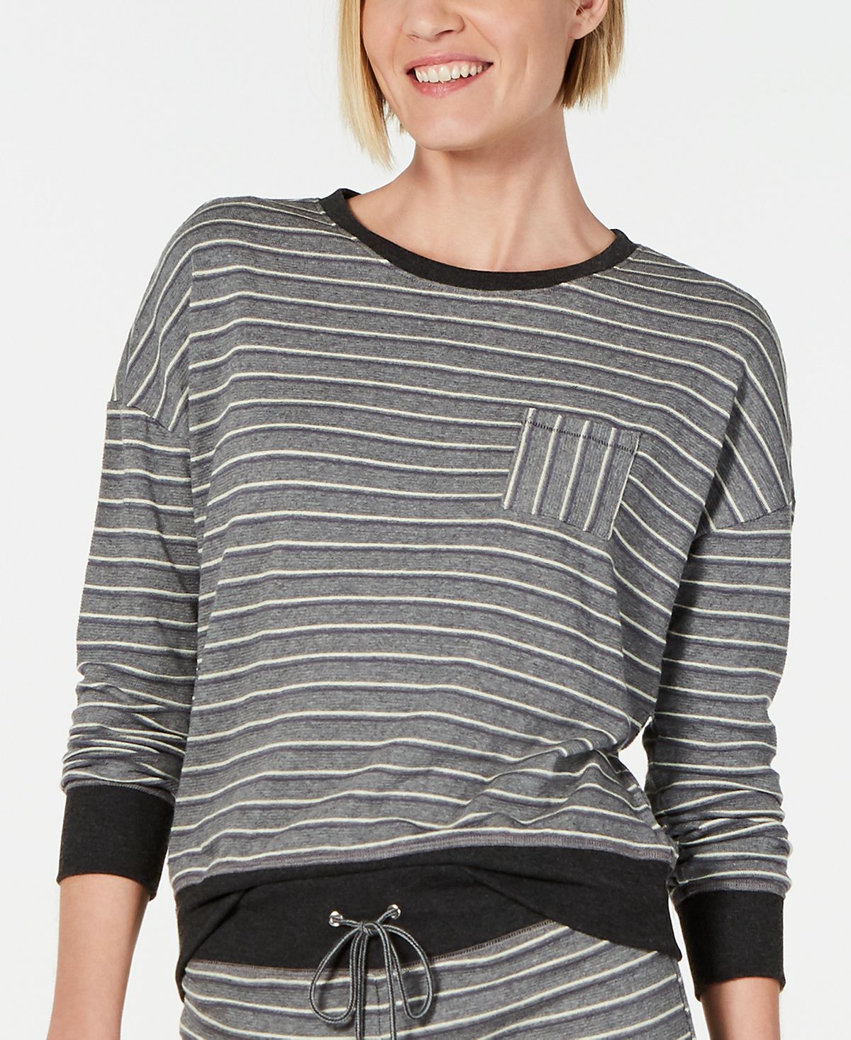 Alfani Ultra Soft Crewneck Pajama Top Varsty Strp Gry