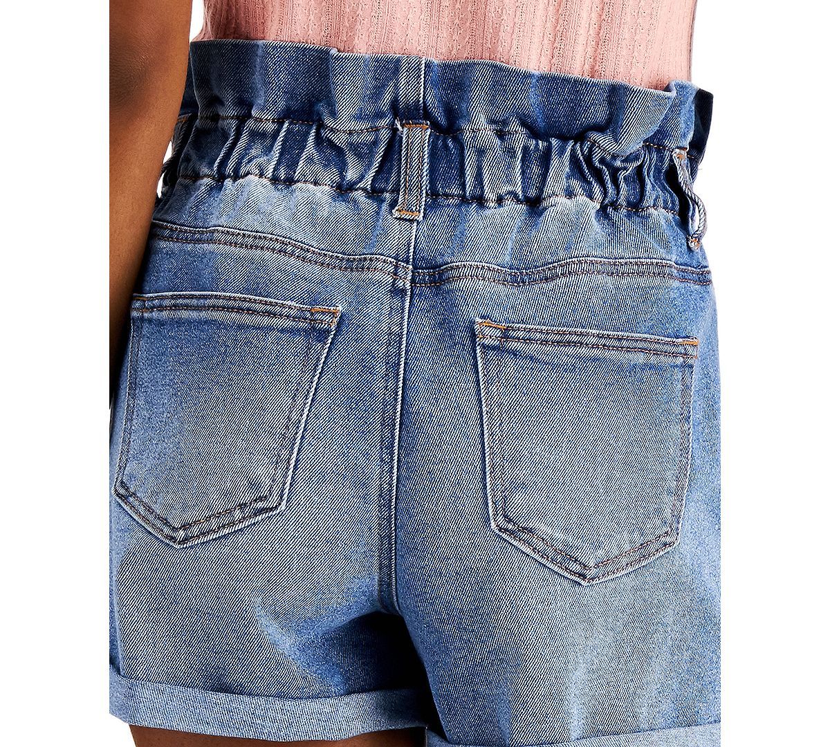 With a high-rise paperbag waist these shorts from YNQ Denim elongate your legs and offer a hint of stretch to keep you moving.Approx. model height is 5'10" and she is wearing size small; Approx. inseam: 3"; High rise; Zipper and double-button closure at front; belt loops Paperbag waist; buttoned tabs at side of waist; cuffed hem; Cotton/polyester/spandex; Machine washable; Imported