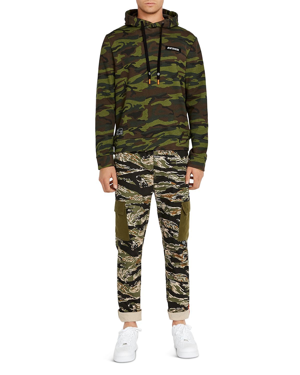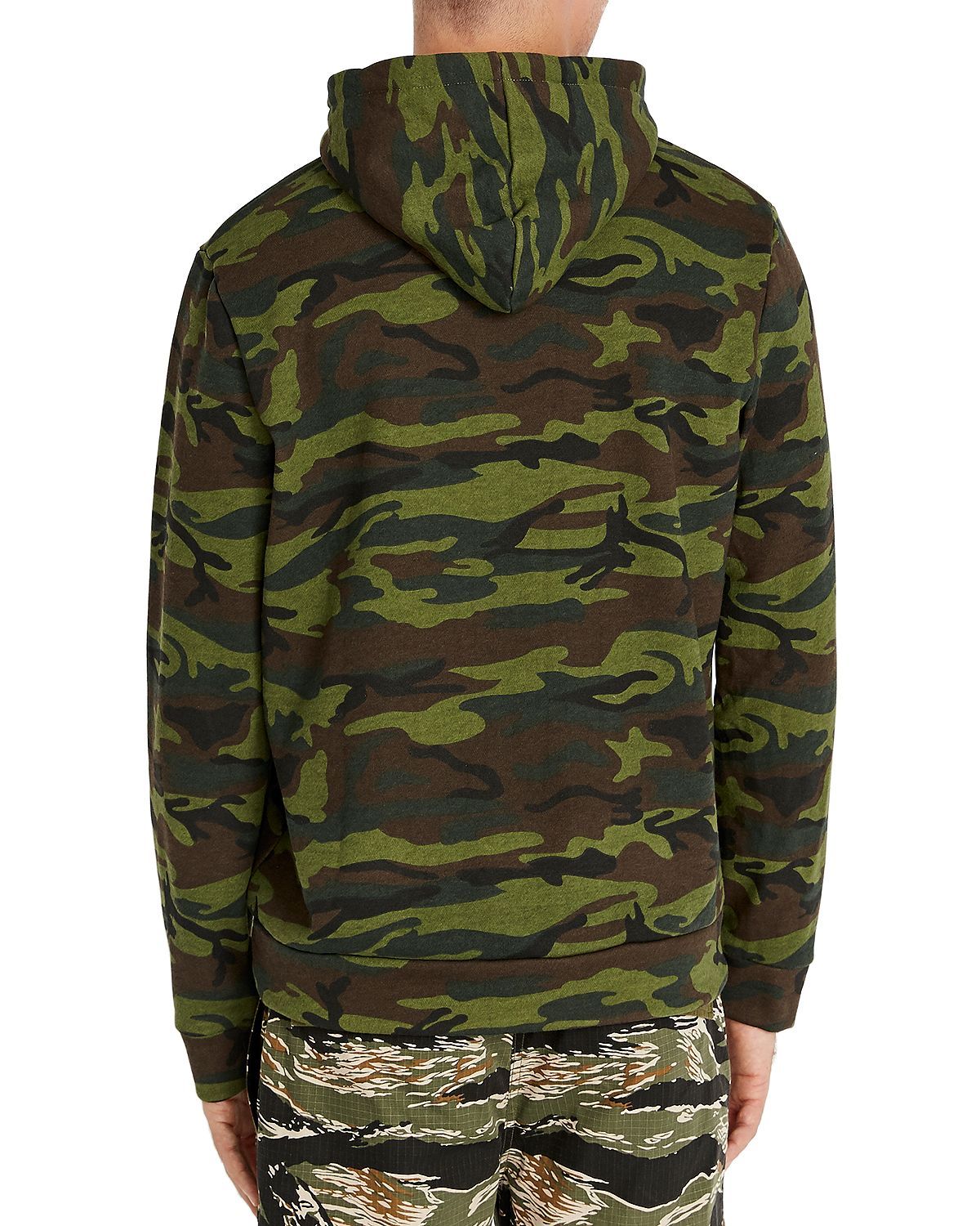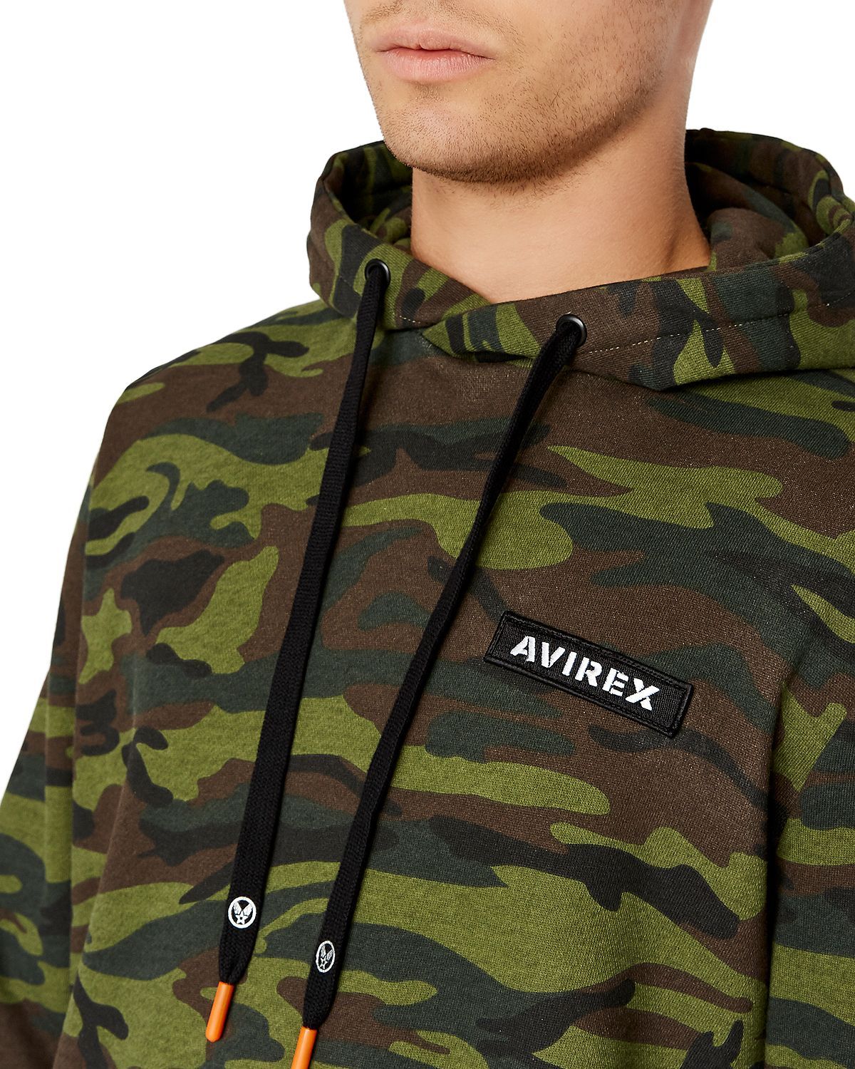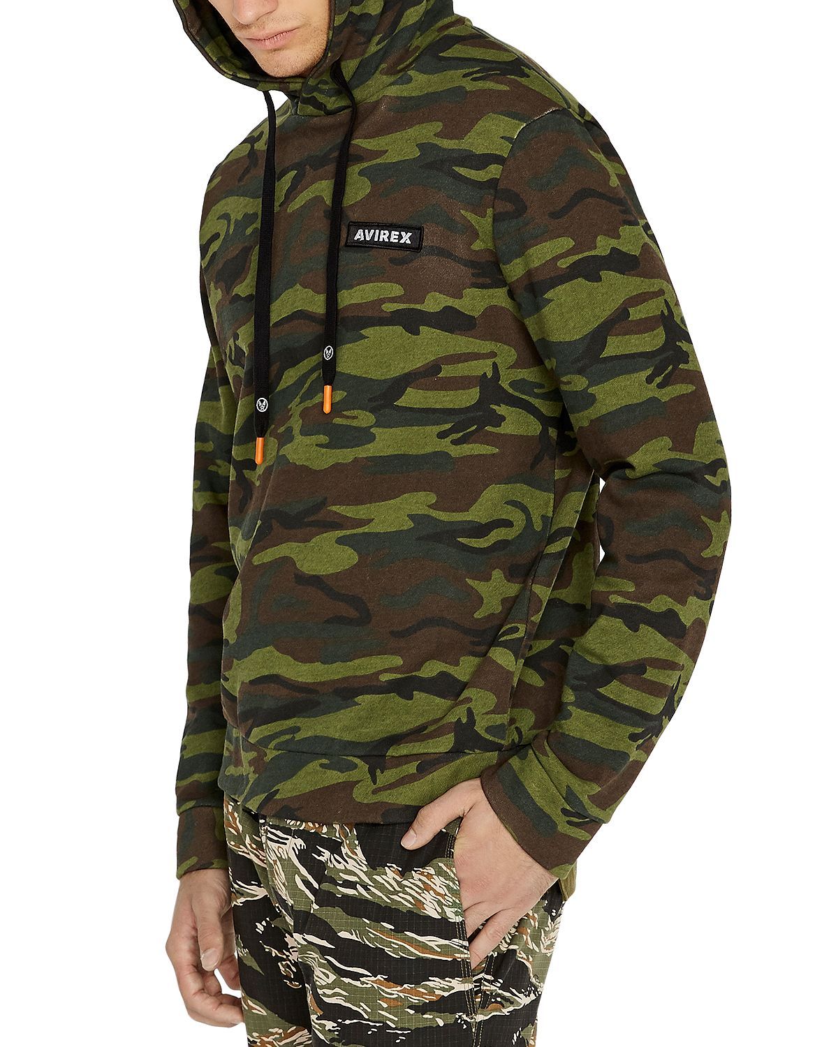 Fits true to size order your normal size; Model measurements: 6'2" height 38" chest 30" waist 34" inseam wearing a size medium/32/48EU; Drawstring hood Logo patch at left chest; Long sleeves with banded cuffs; Banded hem; Allover camo print; 60% cotton/40% polyester; Machine wash; Imported
