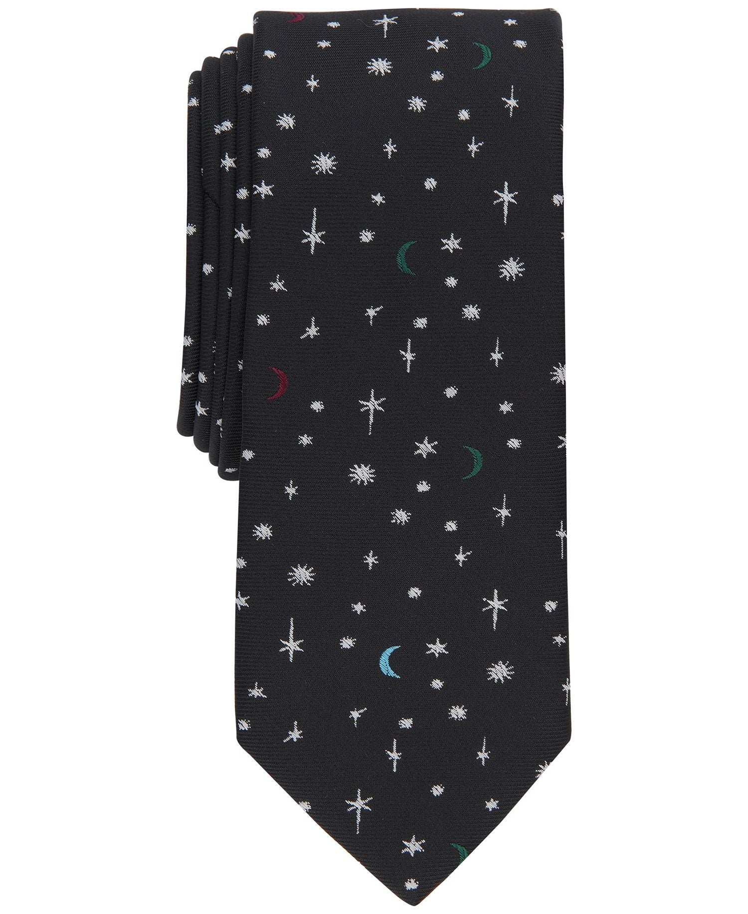 Add some whimsical galactic depth to your formal collection with this skinny tie from Bar III patterned with a glistening constellation of sickle moons and stars.