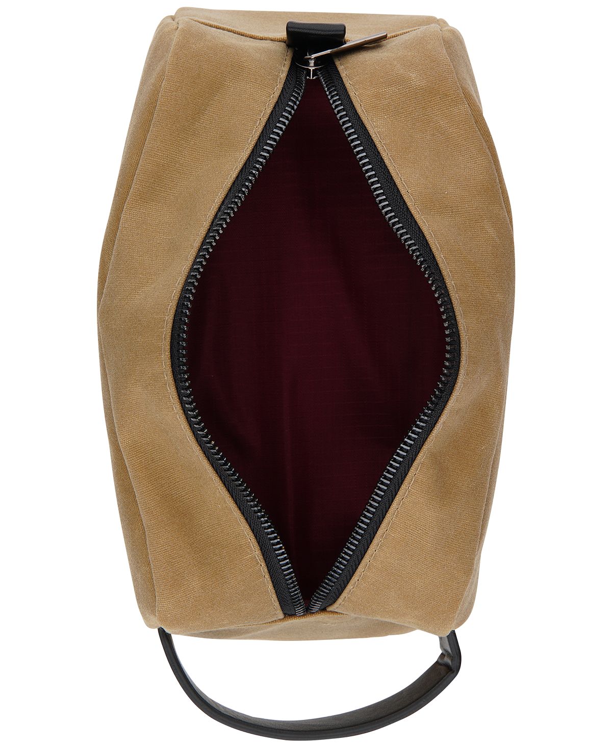 Whether jet-setting or on the road keep your travel style on-point with the rich waxed cotton finish of this compact shave kit by Bespoke.Approx. dimensions: 8-21/32"L x 4-9/64"H x 3-47/64"W; Full-zip top closure; Carrying handle at side; Waxed cotton; ripstop 190T lining; polyurethane handle and trim; Spot clean; Imported