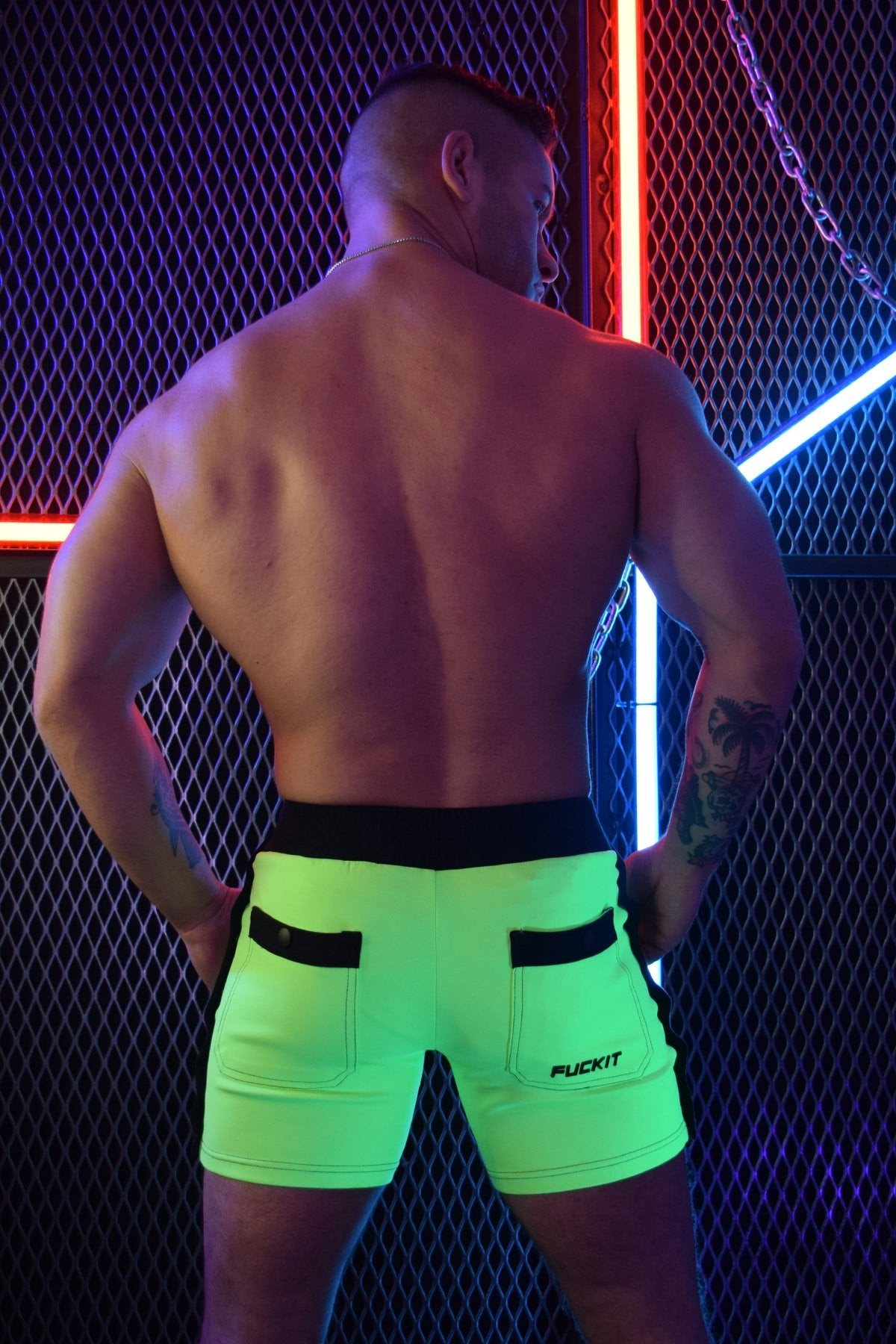 When you combine innovation and sexy fashion, you get BREEDWELL. Introducing the new BACKPACK SHORT, sure to be the must-have item this season. Made of a buttery heavyweight nylon knit that’s soft to the touch and revealing (when they’re on AND off), these shorts have snaps on the side so you can pull them completely off in one sexy reveal. But that’s not all, they also feature a built-in backpack that you can fold the shorts into and secure around your back when you’re trying to skip the clothes-check at the underwear party. With zippered pockets to secure your stash, a premium PVC patch on the front, and the message “fuck it” on the back, everyone will know exactly what your backpackin’. Get yours in neon green, black, and red.