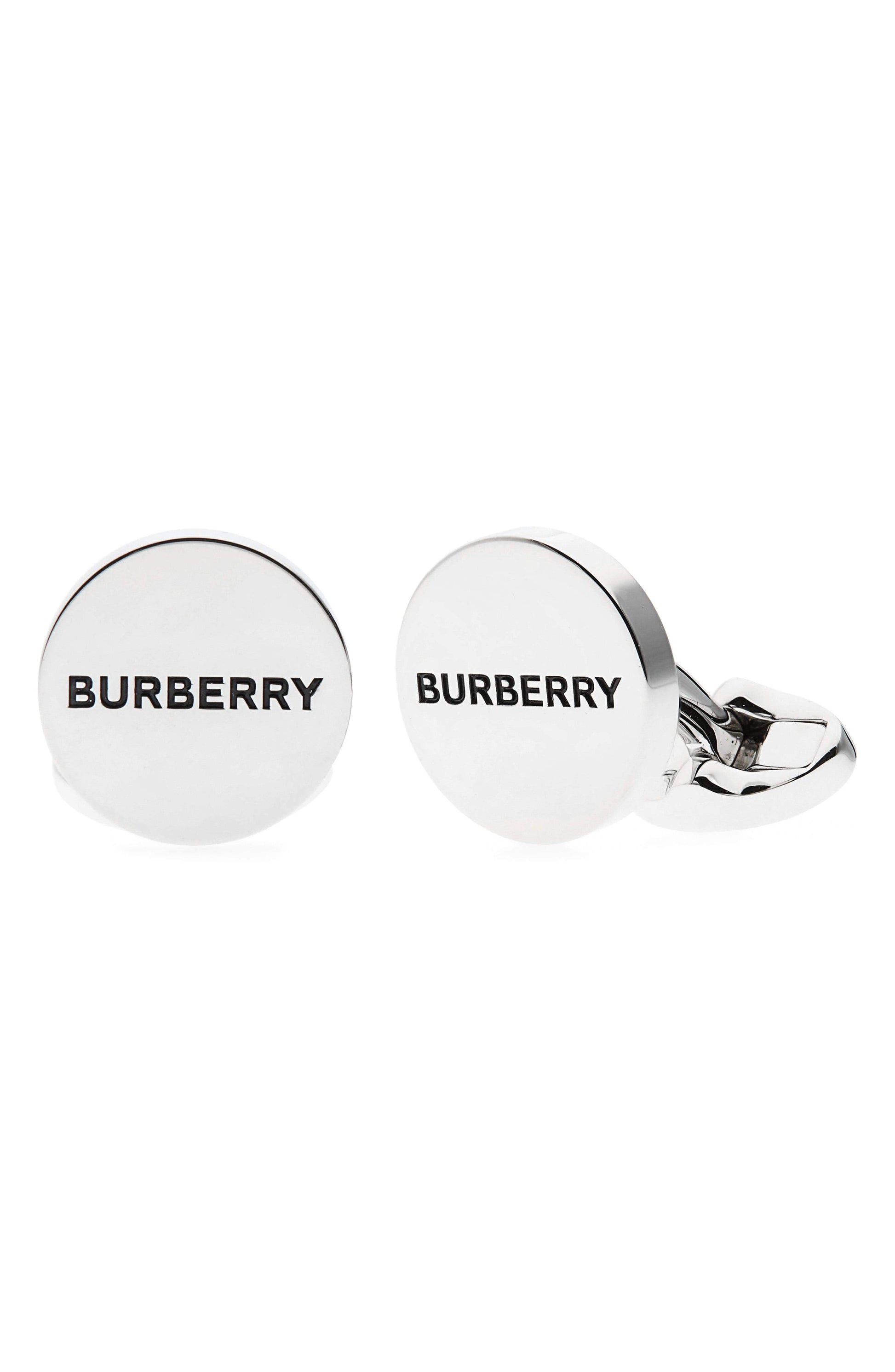 Refined round cufflinks in silver-plated brass with logo-engraved faces. Engraved Burberry lettering at front. Brass/enamel Imported SIZING Width, about 0.39".
