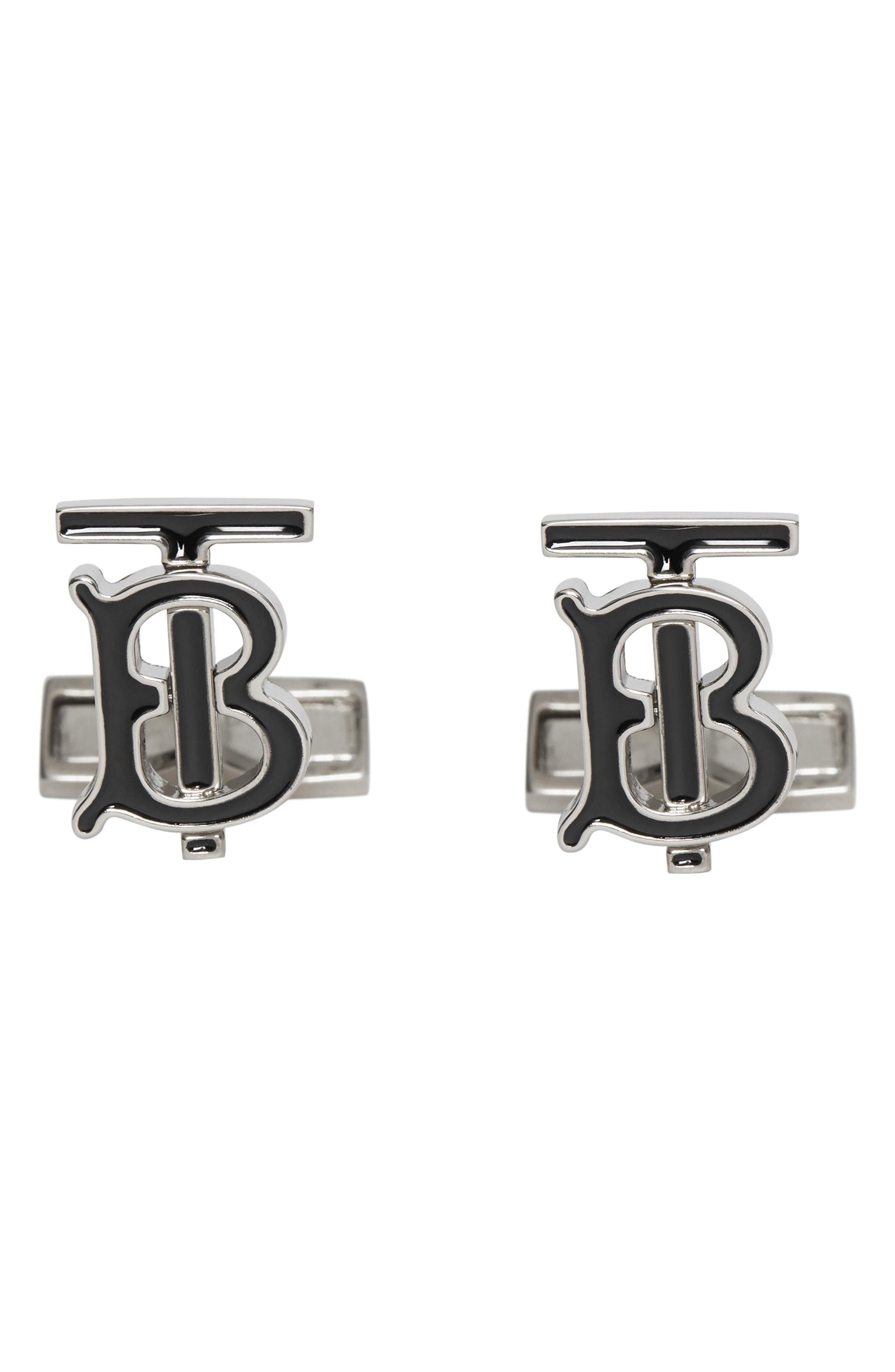 Dark enamel framed in palladium-plated brass distinguishes cuff links designed in a monogram that pays homage to Thomas Burberry, the brand's founder.