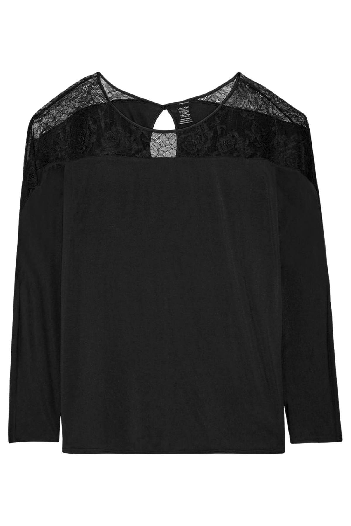 - Cut for a relaxed fit, it has pretty lace paneling framing the shoulders and arms.