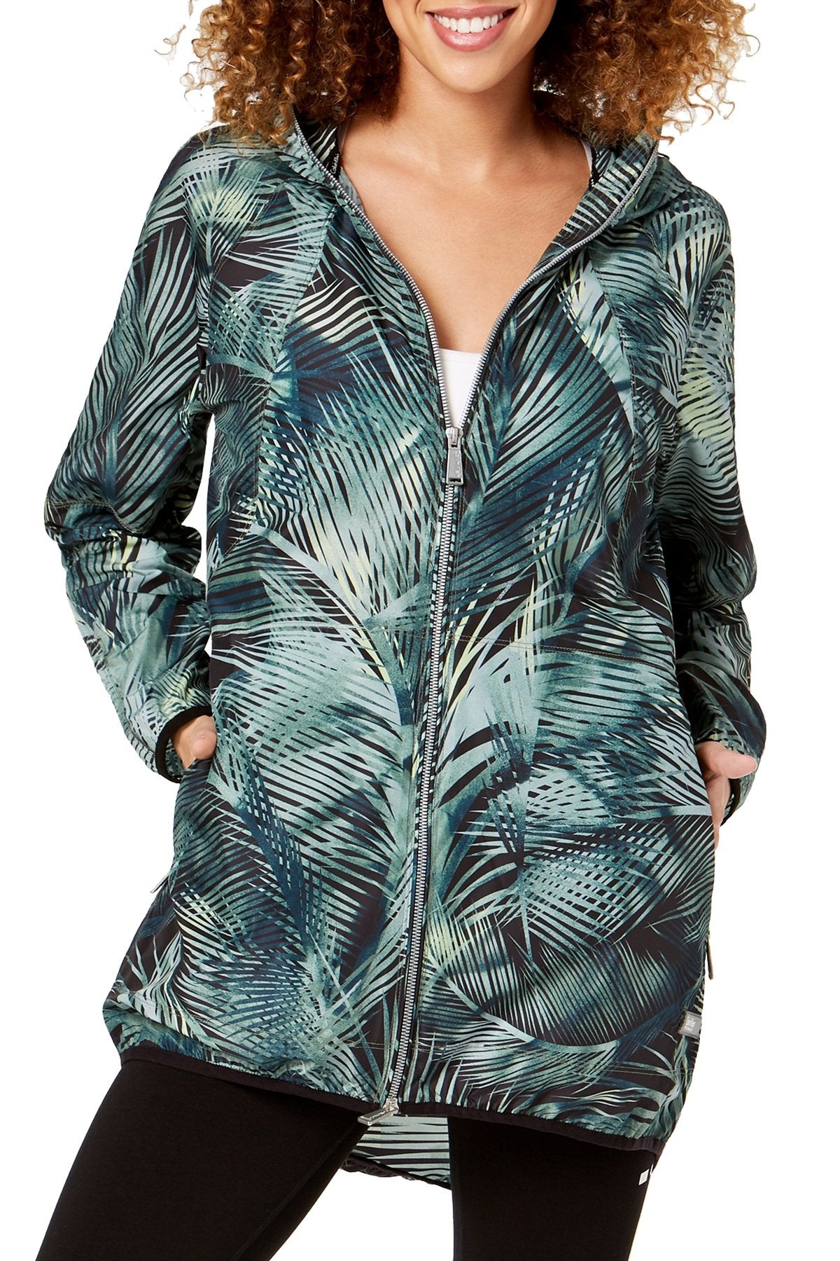 - Stay stylish on the go with this lightweight jacket from Calvin Klein Performance, featuring a dramatic variation on a palm print and a longer line for enhanced coverage.