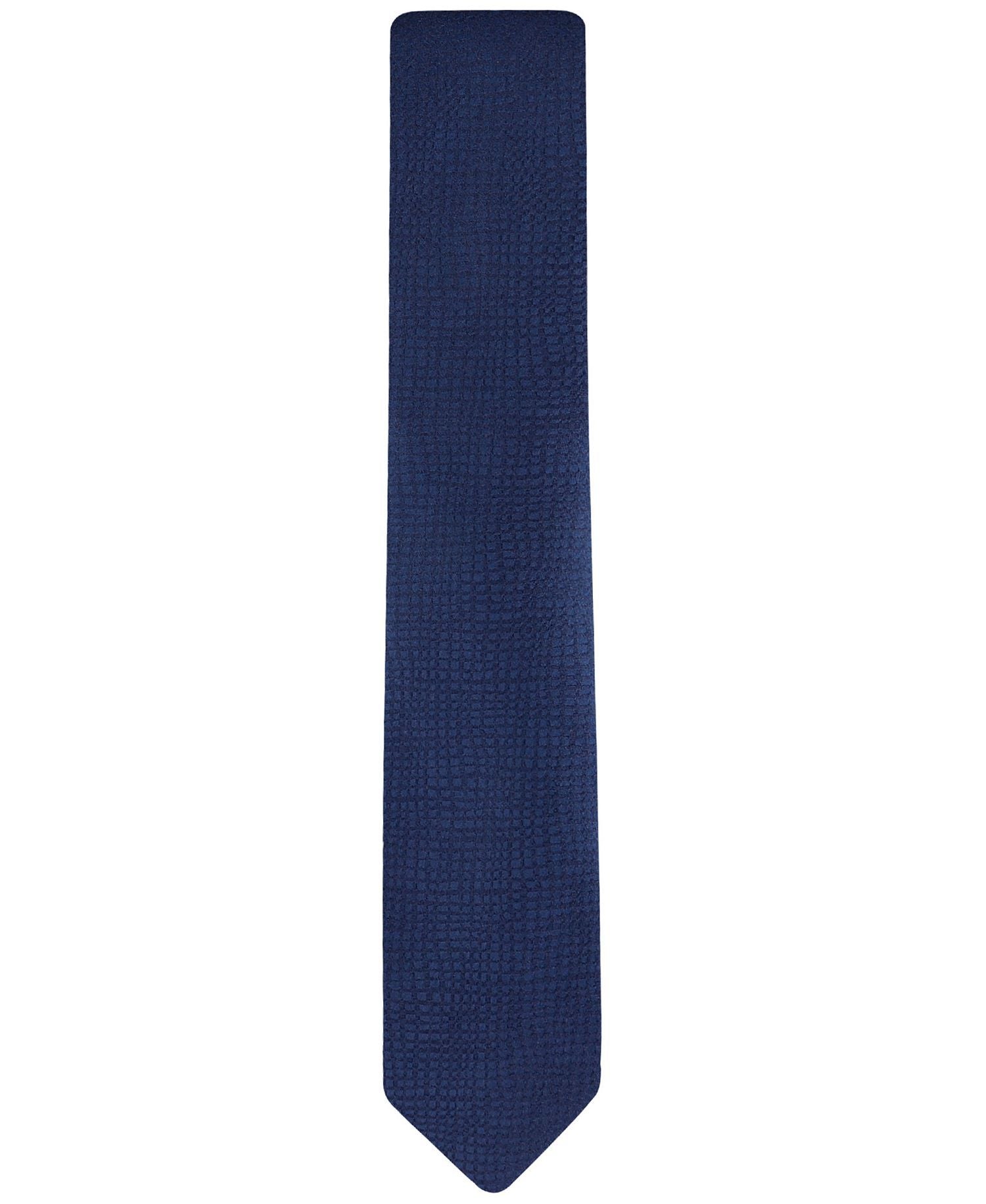 Designed with a modern distorted grid pattern this classic three-inch tie from Calvin Klein gives you versatile all-black style that pairs effortlessly with your button-down collection.