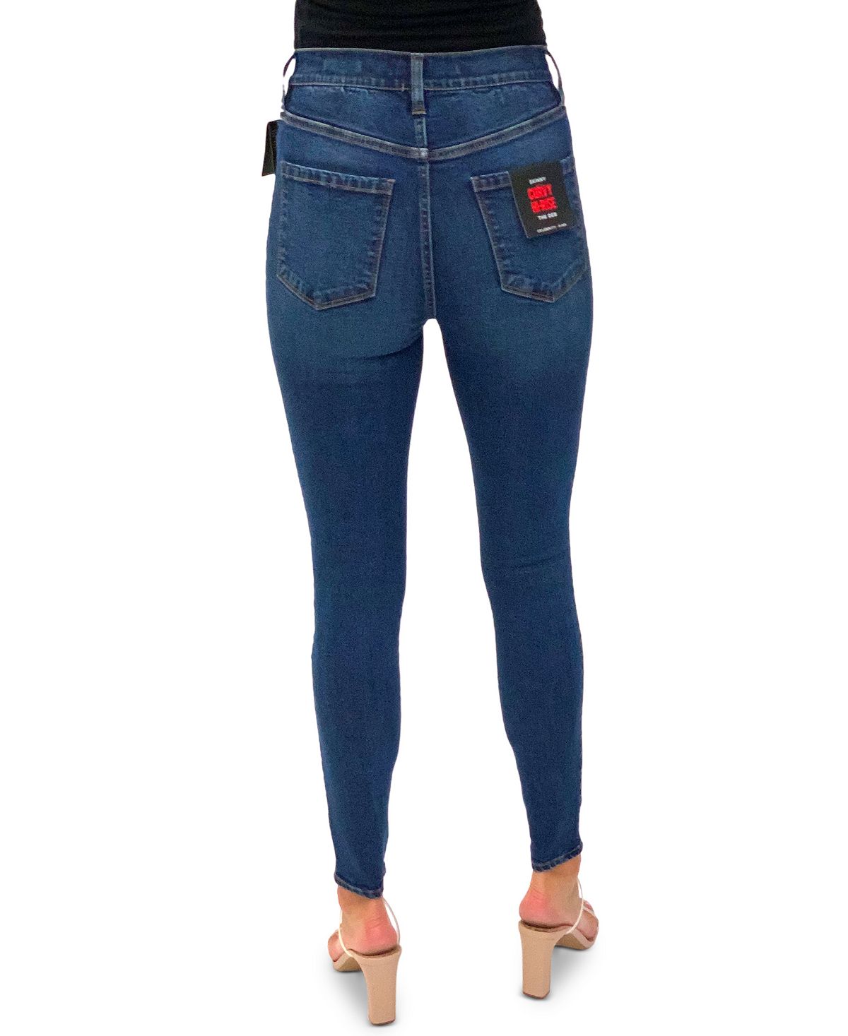 Meet your new go-to denim: Celebrity Pink's high-rise cotton jeans are sleek in a skinny-leg silhouette.Approx. inseam: 29"; High rise: approx. 10"; Zipper and button closure at front; belt loops Faux front pockets; Cotton/spandex; Machine washable; Imported