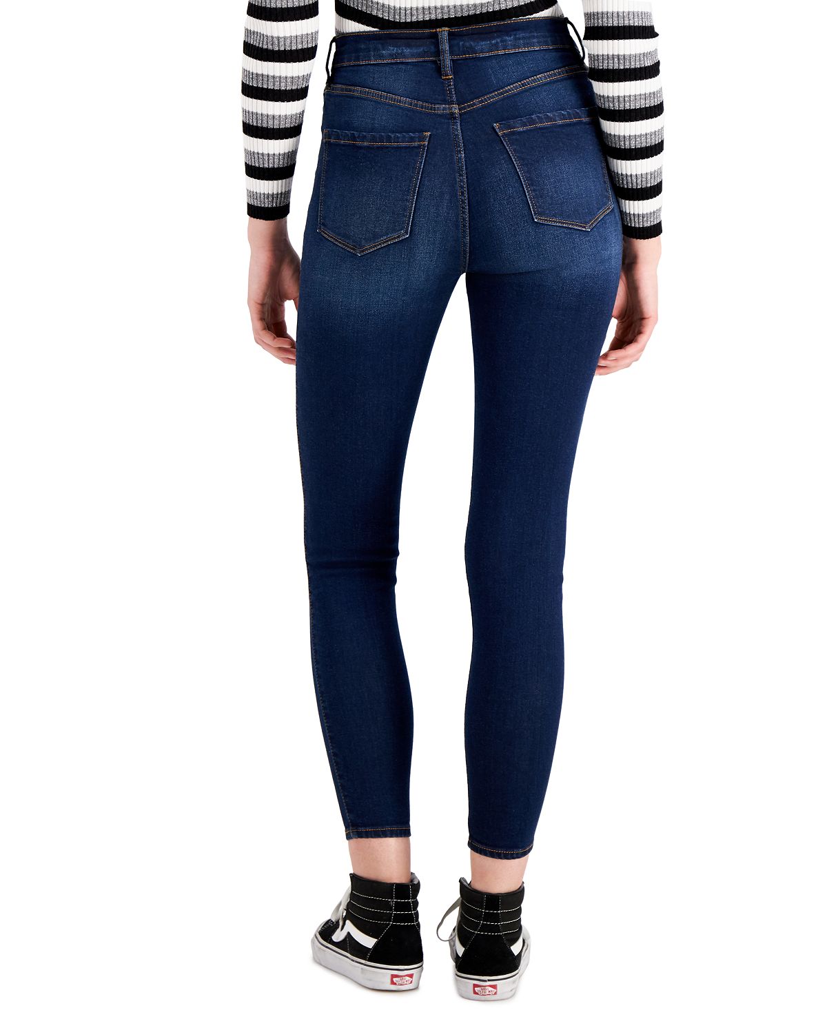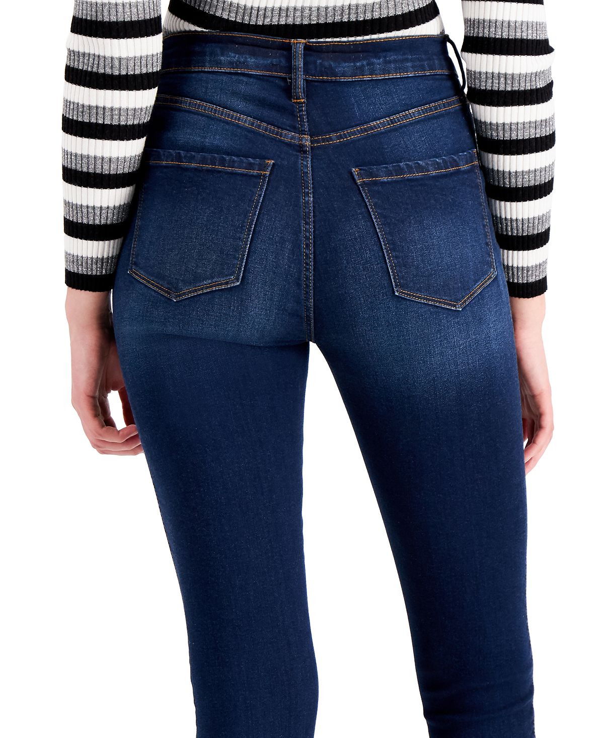 Meet your new go-to denim: Celebrity Pink's high-rise cotton jeans are sleek in a skinny-leg silhouette.Approx. inseam: 29"; High rise: approx. 10"; Zipper and button closure at front; belt loops Faux front pockets; Cotton/spandex; Machine washable; Imported
