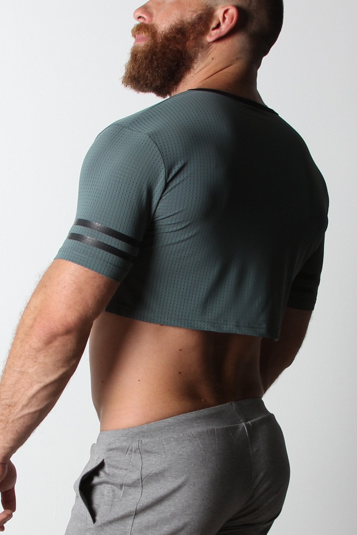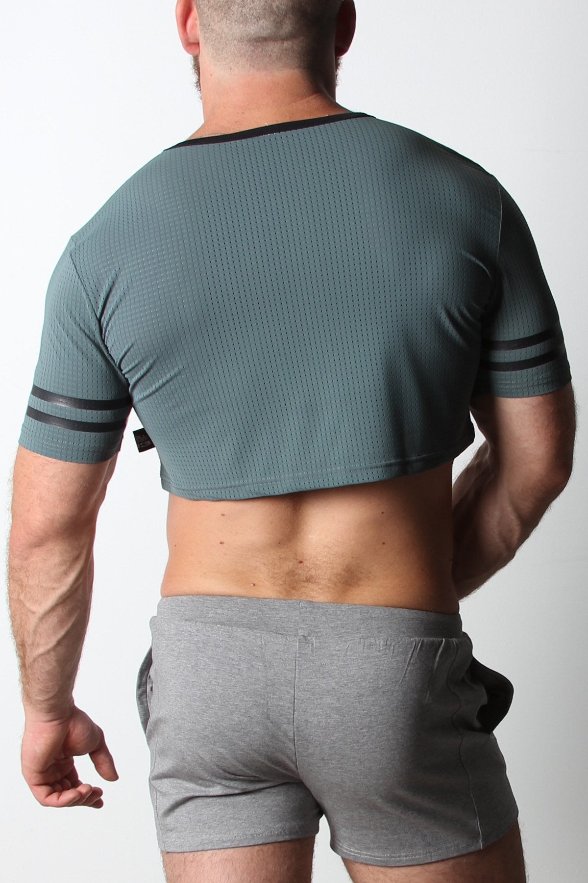 This vintage gym inspired cutoff shirt is crafted from a high-quality perforated polyester/spandex sports mesh fabric. A new rubberized heat transfer logo upfront. It has a tailored cut that drapes nicely over your torso and makes your arms pop! Match it with CellBlock13's Relay collection shorts, jocks or briefs, or simply pair it with your favorite jeans.