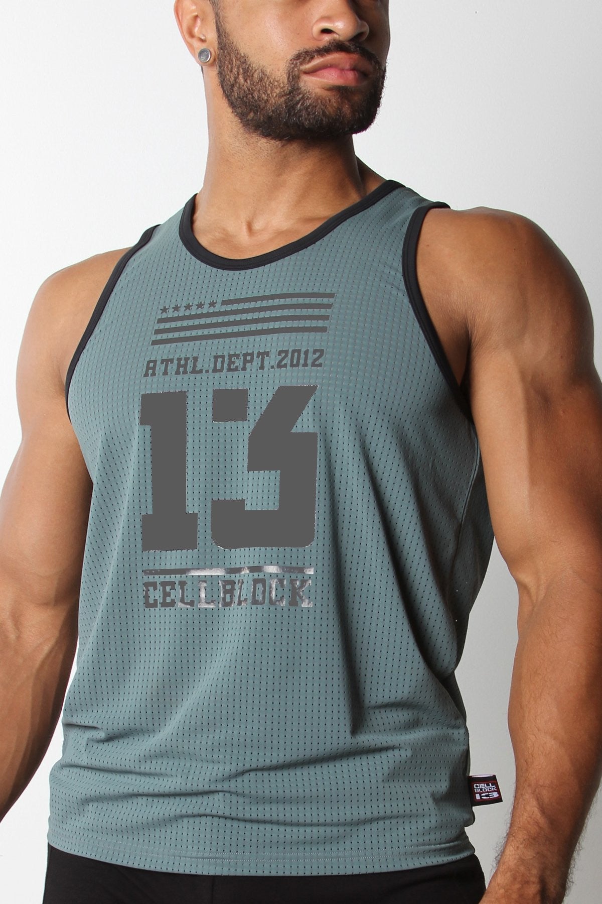 This gym inspired tank top is crafted from a high-quality perforated polyester/spandex sports mesh fabric. A new rubberized heat transfer logo upfront. It has a tailored cut that drapes nicely over your torso and makes your arms pop! Match it with CellBlock13's Relay collection shorts, jocks or briefs, or simply pair it with your favorite jeans.