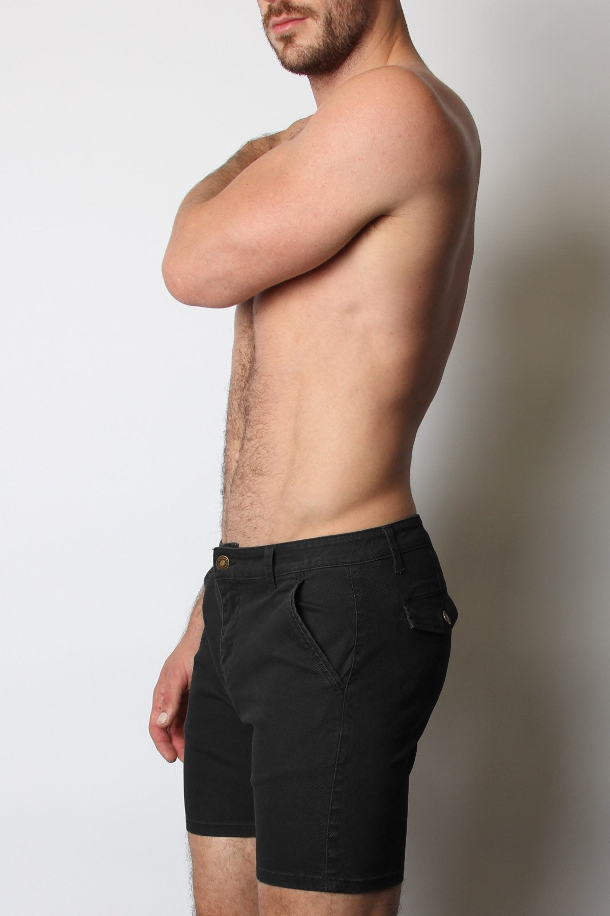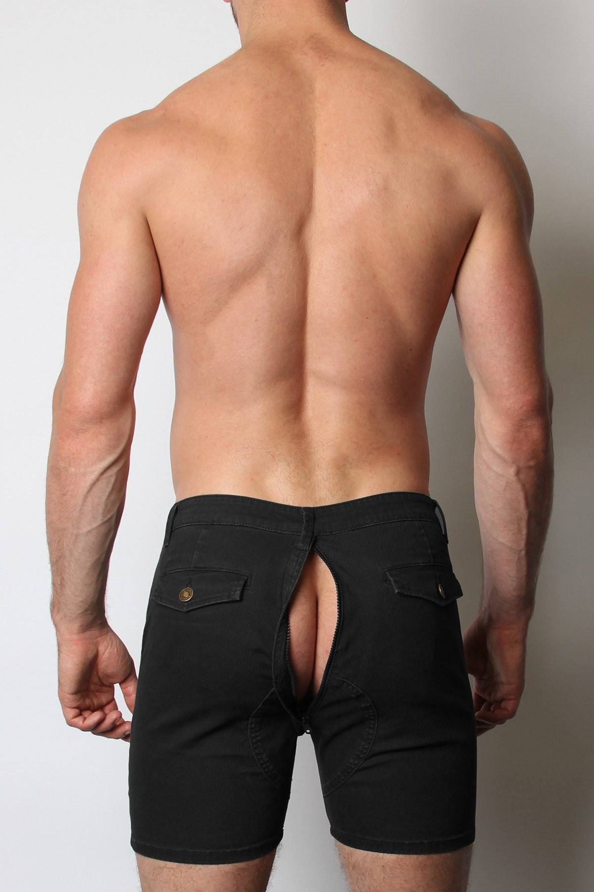 This rugged, slim-fit Titan cotton/spandex twill short from CellBlock13 is made of comfortable stretch fabric in 4 new colors. It's most distinguishing (and sexy!) feature is the prominent circular crotch gusset, or "saddle seat", visible in back. With a mid-thigh length, a zipper fly, belt loops and side and back pockets.(If you have larger than normal thighs or butt, please order 1 size up!)