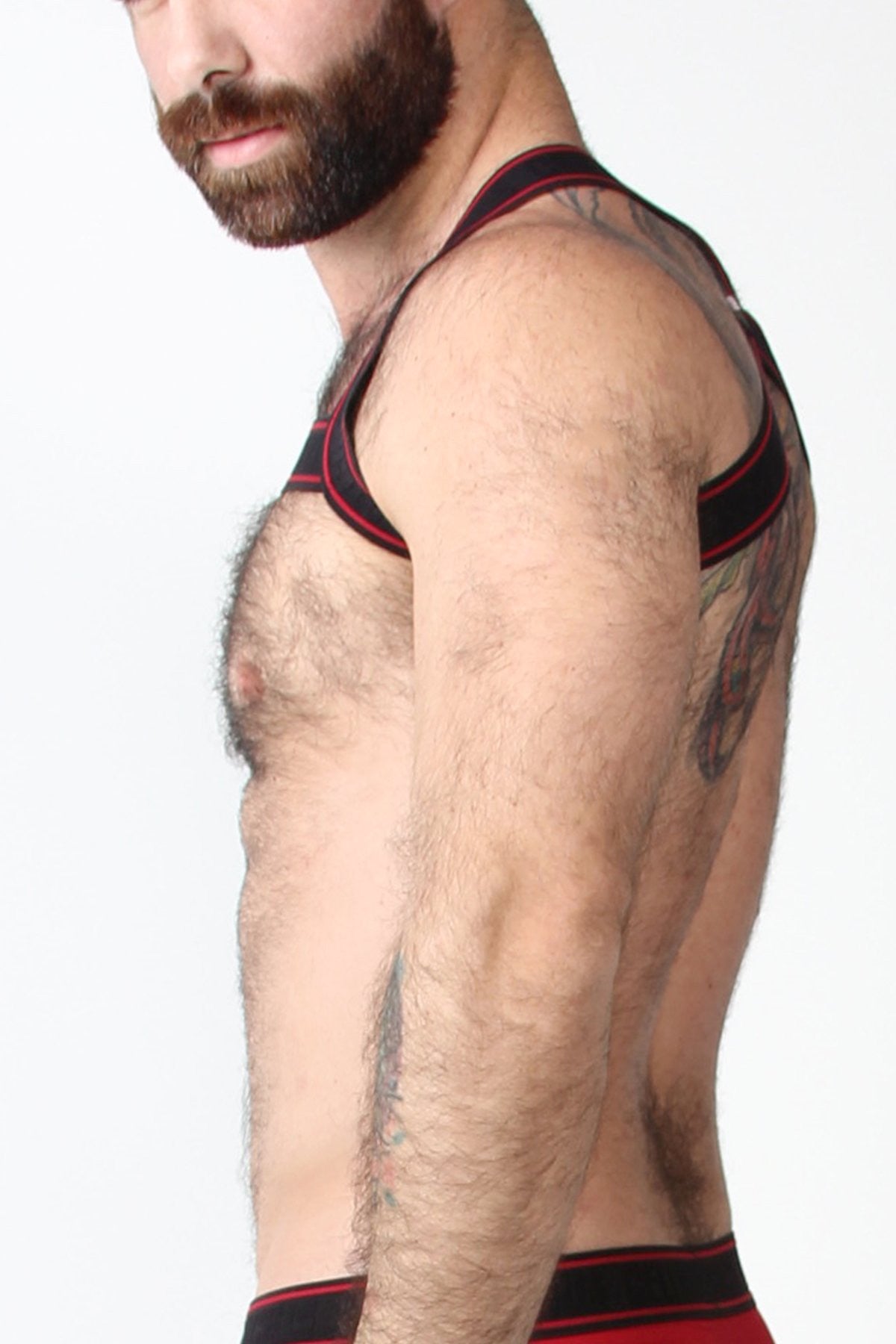 The all new Atlas upper body harness is available in popular fetish colors. Form-fitting elastic bands provide plenty of stretch in your torso and back. Wear this harness with the matching CellBlock13 Atlas jockstrap or brief (Each sold separately) for a complete gear look.