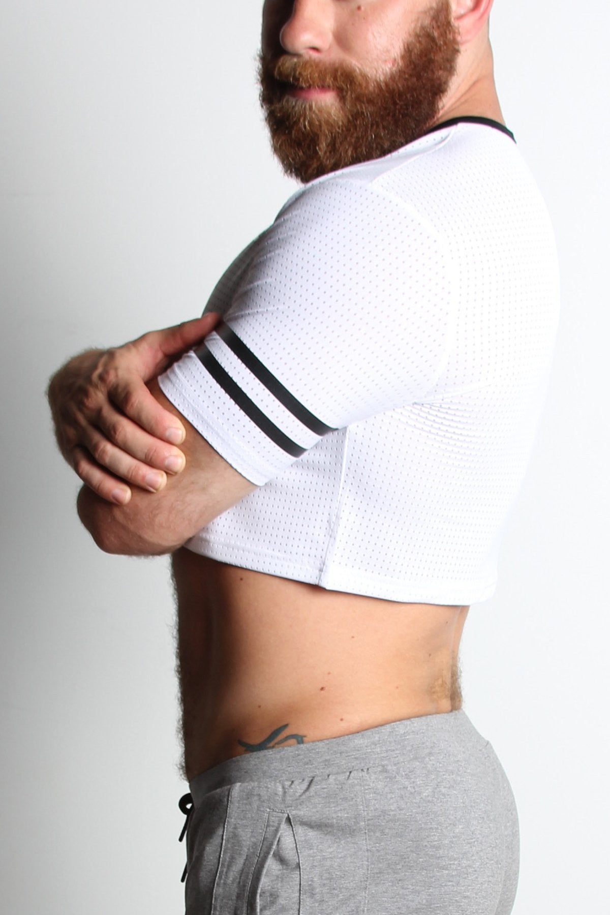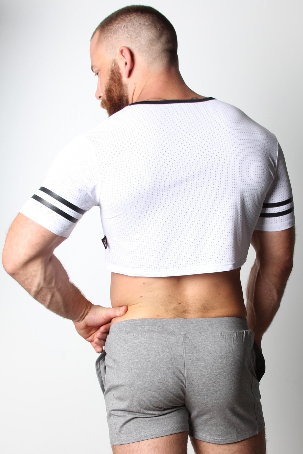 This vintage gym inspired cutoff shirt is crafted from a high-quality perforated polyester/spandex sports mesh fabric. A new rubberized heat transfer logo upfront. It has a tailored cut that drapes nicely over your torso and makes your arms pop! Match it with CellBlock13's Relay collection shorts, jocks or briefs, or simply pair it with your favorite jeans.