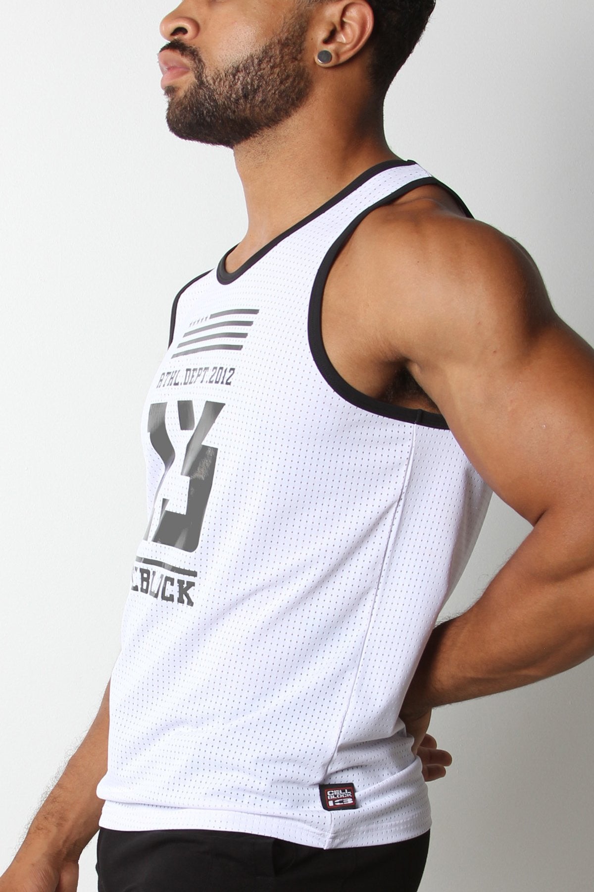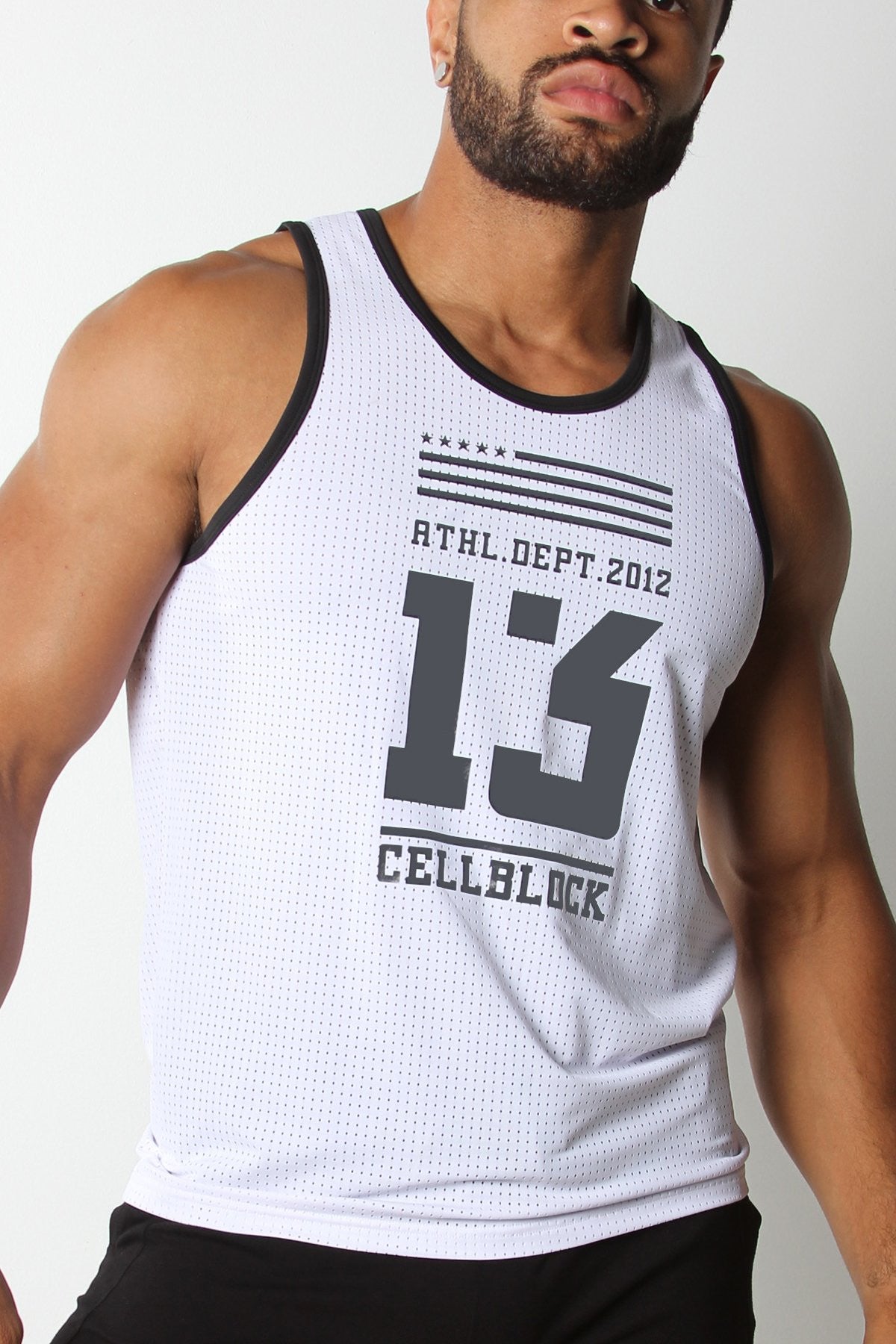 This gym inspired tank top is crafted from a high-quality perforated polyester/spandex sports mesh fabric. A new rubberized heat transfer logo upfront. It has a tailored cut that drapes nicely over your torso and makes your arms pop! Match it with CellBlock13's Relay collection shorts, jocks or briefs, or simply pair it with your favorite jeans.