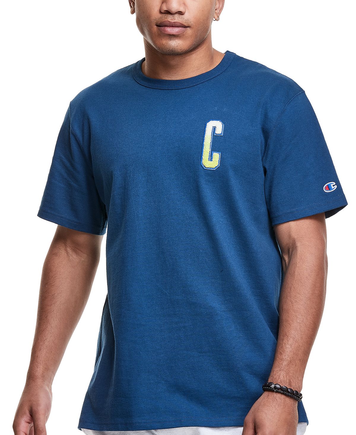 Add a touch of cool sporty style and comfort to your casual wardrobe with this crewneck T-shirt from Champion featuring super-soft cotton and an ombr tufted-chenille logo appliqu at the chest. Standard fit; Crewneck; Tufted-chenille logo appliqu at left chest; logo patch at left sleeve; Cotton/polyester; Machine washable; Imported