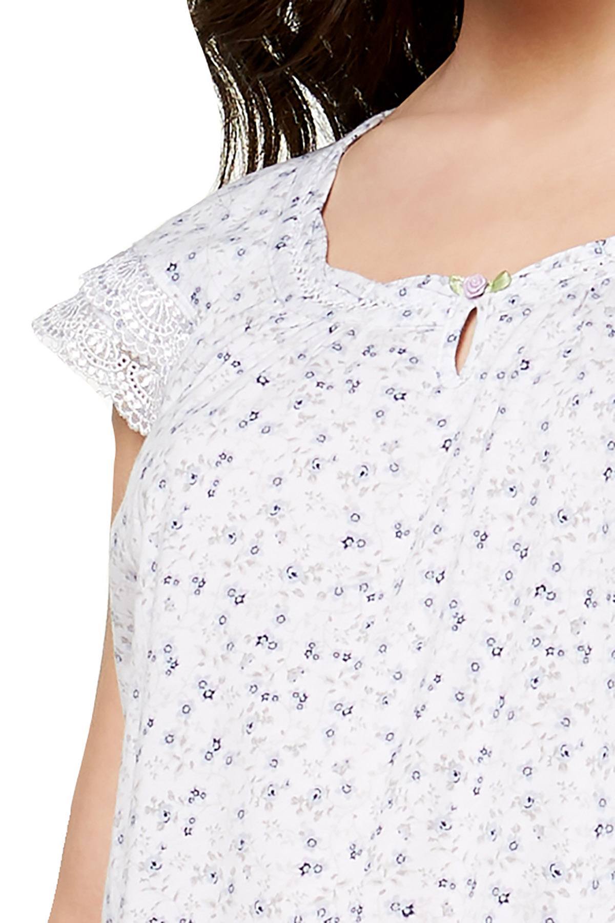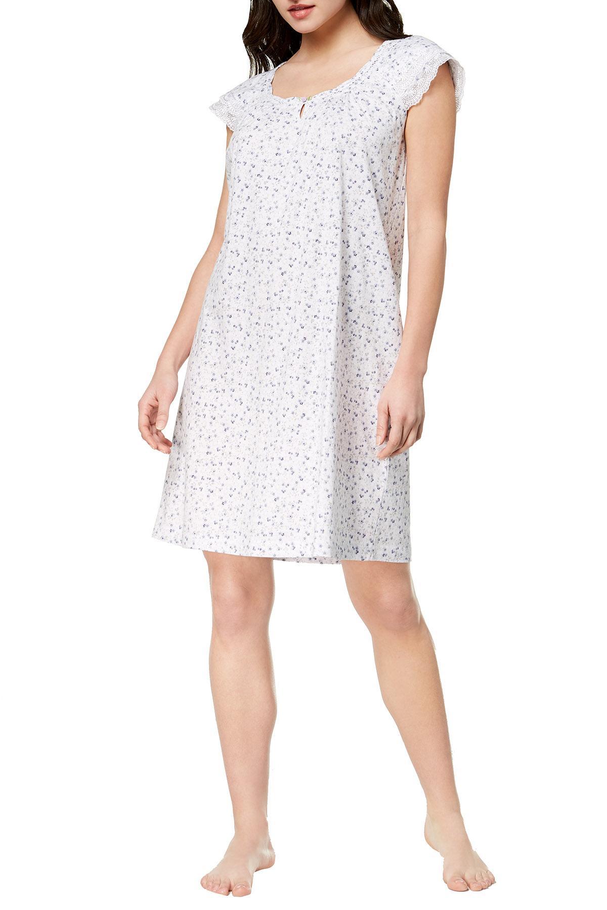 Charter Club Intimates Clematis Floral Cotton Flutter Sleeve Lace Trim Nightgown