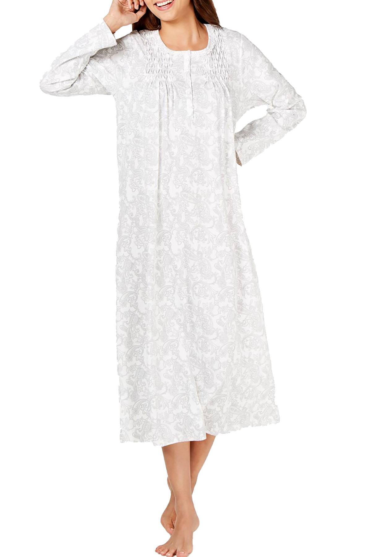 A touch of texture brings soft interest to comfortable cotton with this plus size Charter Club nightgown featuring a great print and coverage-adding ankle length. Length: Hits at ankle; approx. 50" long Texture: Knit fabric Special Features: Textured at chest Closure: Pullover styling Neckline: Scoop neckline Sleeve Length: Long sleeves All cotton Machine washable Imported