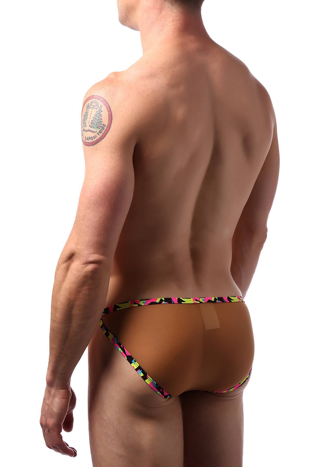 Embrace a harmonious fusion of comfort and modern style with our CheapUndies Brown Mesh Trimmed Bikini. This stunning piece is expertly crafted from super soft, fine mesh that ensures a breathable and light-as-air fit. Its see-through design adds an enticing touch, enhancing the bikini's overall allure. The vibrant printed trimming further enriches its aesthetic, offering a delightful contrast to the brown mesh. This bikini not only guarantees a barely-there sensation but also provides optimum support, making it a perfect choice for those who appreciate both function and fashion. Stand out in our captivating mesh bikini that beautifully embodies playful femininity and contemporary elegance.