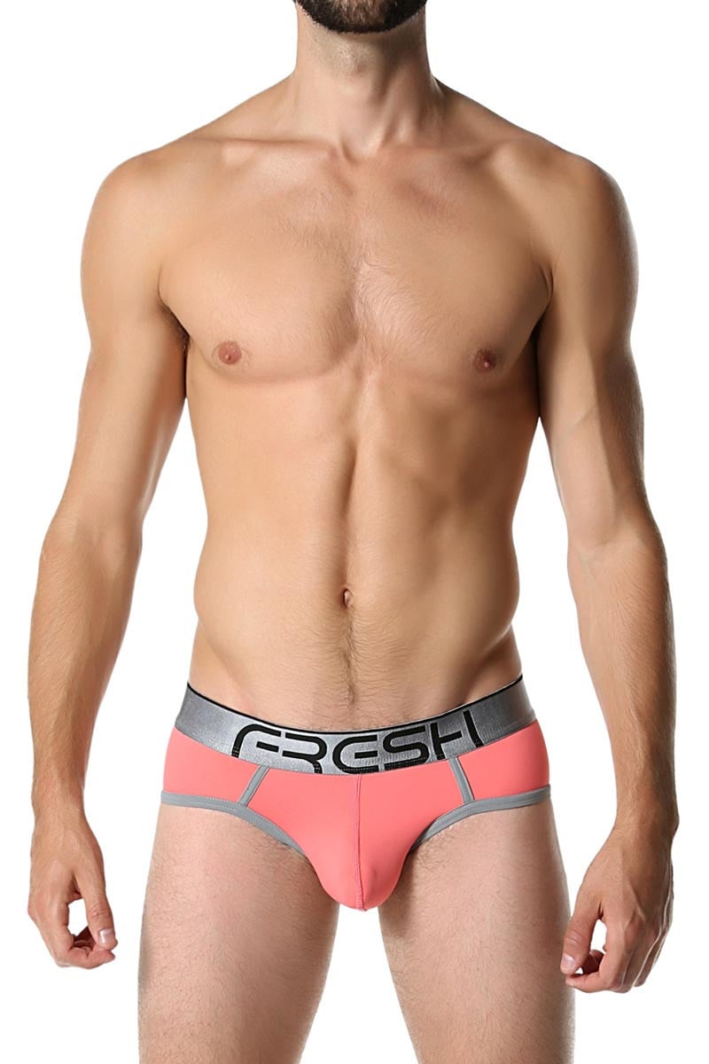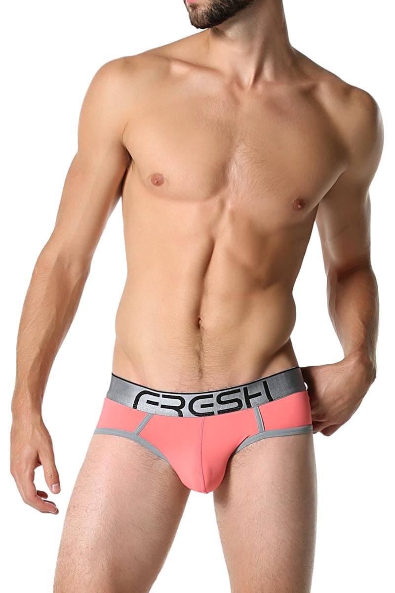 - Slim-fit briefLow-rise waist1.5" FRESH waistbandLuxe nylon-stretch fabricContoured enhancement pouchFlatlock seamFresh coral bodyContrasting trim detailsImported* Based on our popular Neon Collection