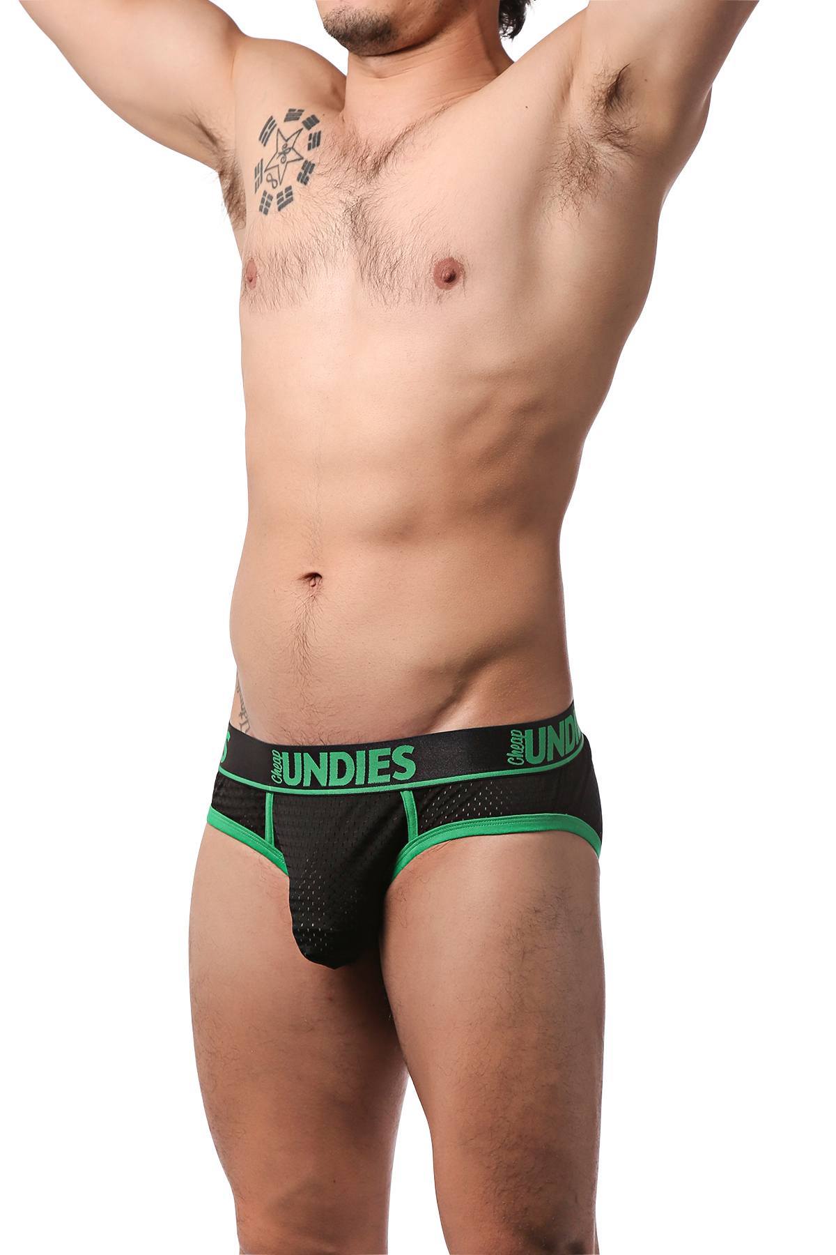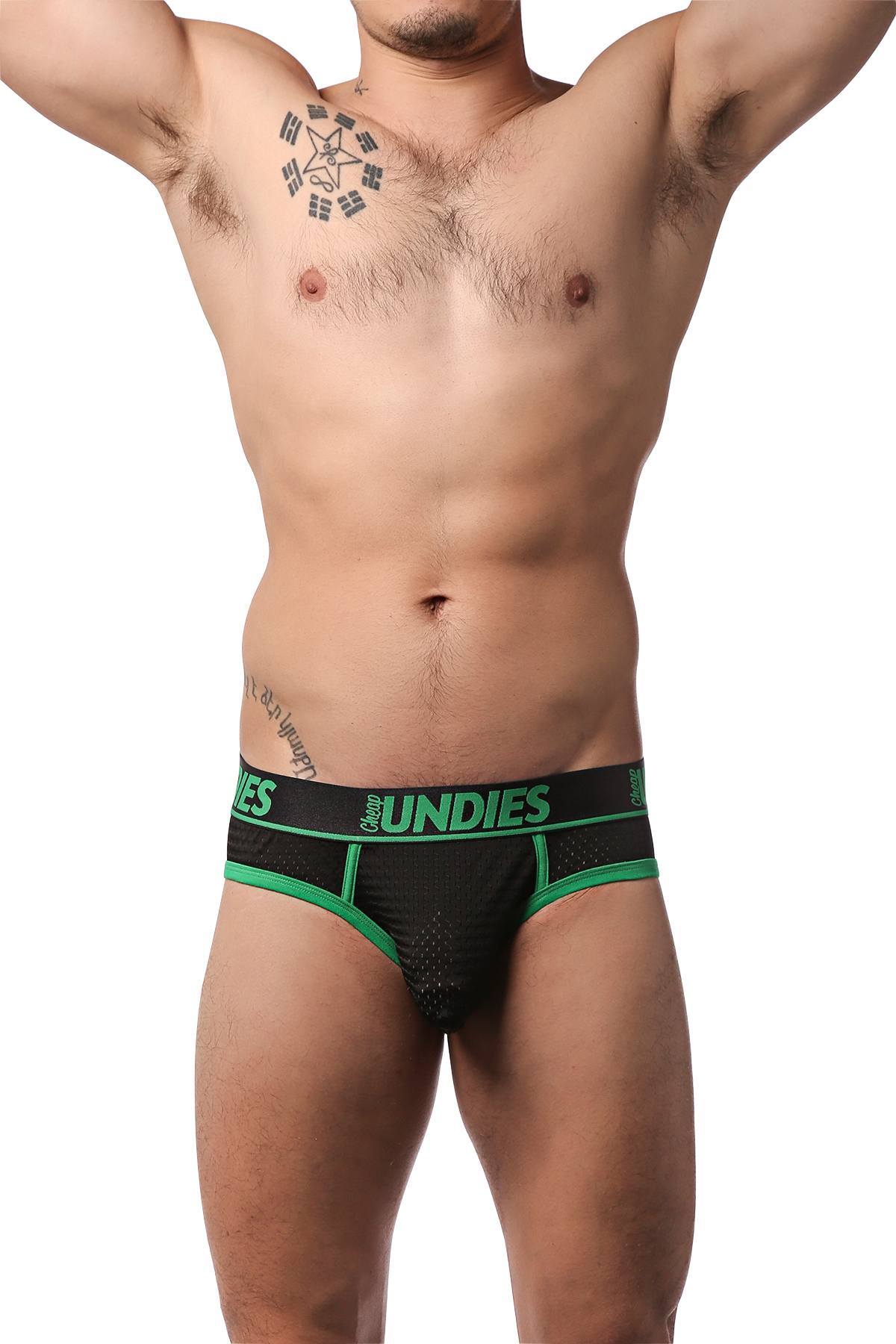 Get ready to work up the sweat of a lifetime. These briefs combine rugged athleticism with a mile-wide kinky streak, setting the eroticism up to 10. Green contrast piping provides that (not-so) subtle pop of color you crave. Breathable mesh makes this searingly hot brief perfect for the gym, the bedroom, and beyond.
