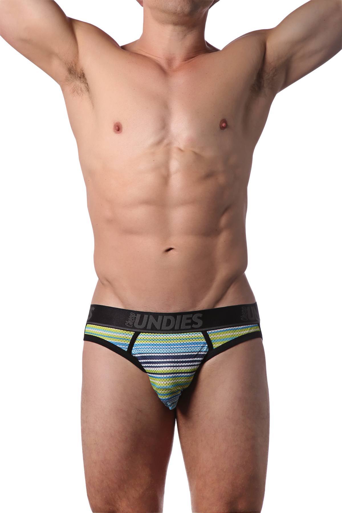 Looking for something fun, sporty, and stylish this summer? Look no further than the CheapUndies Green Stripes Sport Mesh Jockstrap! This mens underwear brief features a fun green stripes print that is perfect for the summertime. The mesh fabric is stretchy and breathable, making it ideal for active wear. The front pouch is designed to enhance your assets, giving you added confidence no matter what youre doing. Whether you're working out at the gym, or just chilling at home, this jock brief is sure to keep you comfortable all day long. So don’t wait – grab a pair (or two!) of these briefs today and enjoy the summer in style!