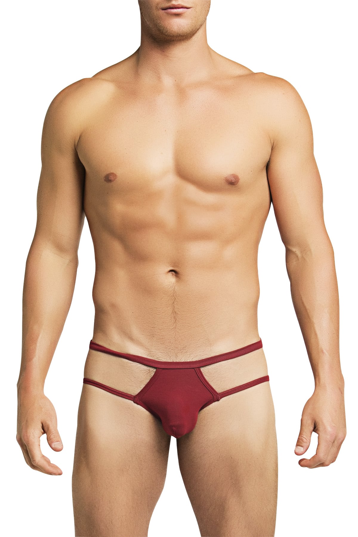 - Details: Deep red body; Low-rise waist; Silky bamboo rayon blend fabric; Double sided swipe cut out detail; Moderate exposure; Tagless, no more itchy tags.