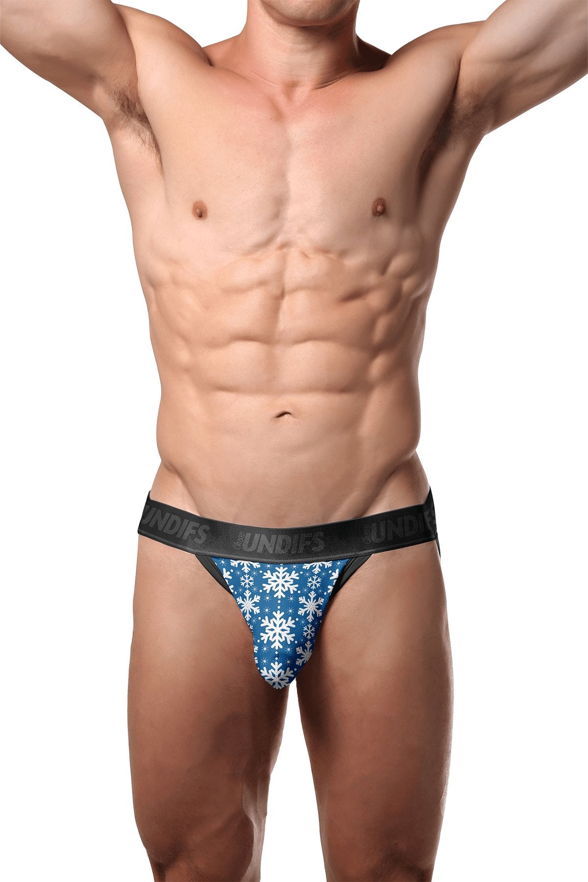 The Snowflake Jock combines a chilly winter aesthetic with a sizzling-hot design. With its frosty snowflake print and cheeky “CheapUndifs” waistband, this jock is perfect for anyone looking to melt hearts at their holiday festivities.