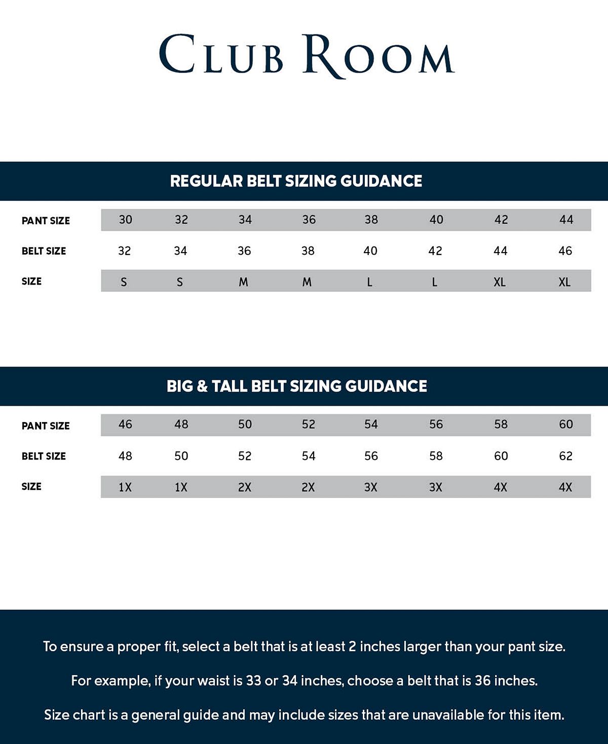 Dress up your more casual look with this belt from Club Room designed to capture the essence of style. Approx. 1-3/8" strap; Silver tone finish harness buckle; canvas strap with leather overlay; For best fit order a size 2" larger than your waist size; Bonded leather/canvas; Spot clean; Imported