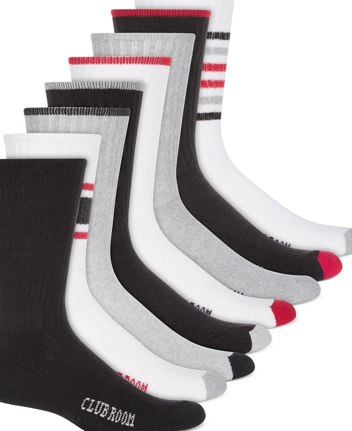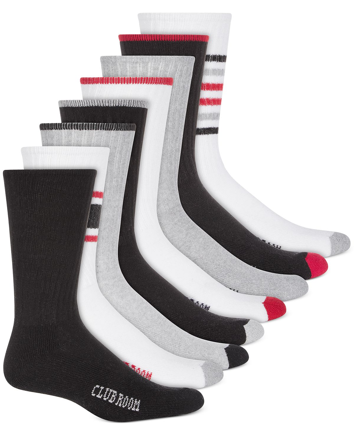 In fun colors and styles these Club Room crew socks are athletic sporty and super comfortable.8-pack; Crew; Polyester/cotton/spandex; Machine washable; Imported