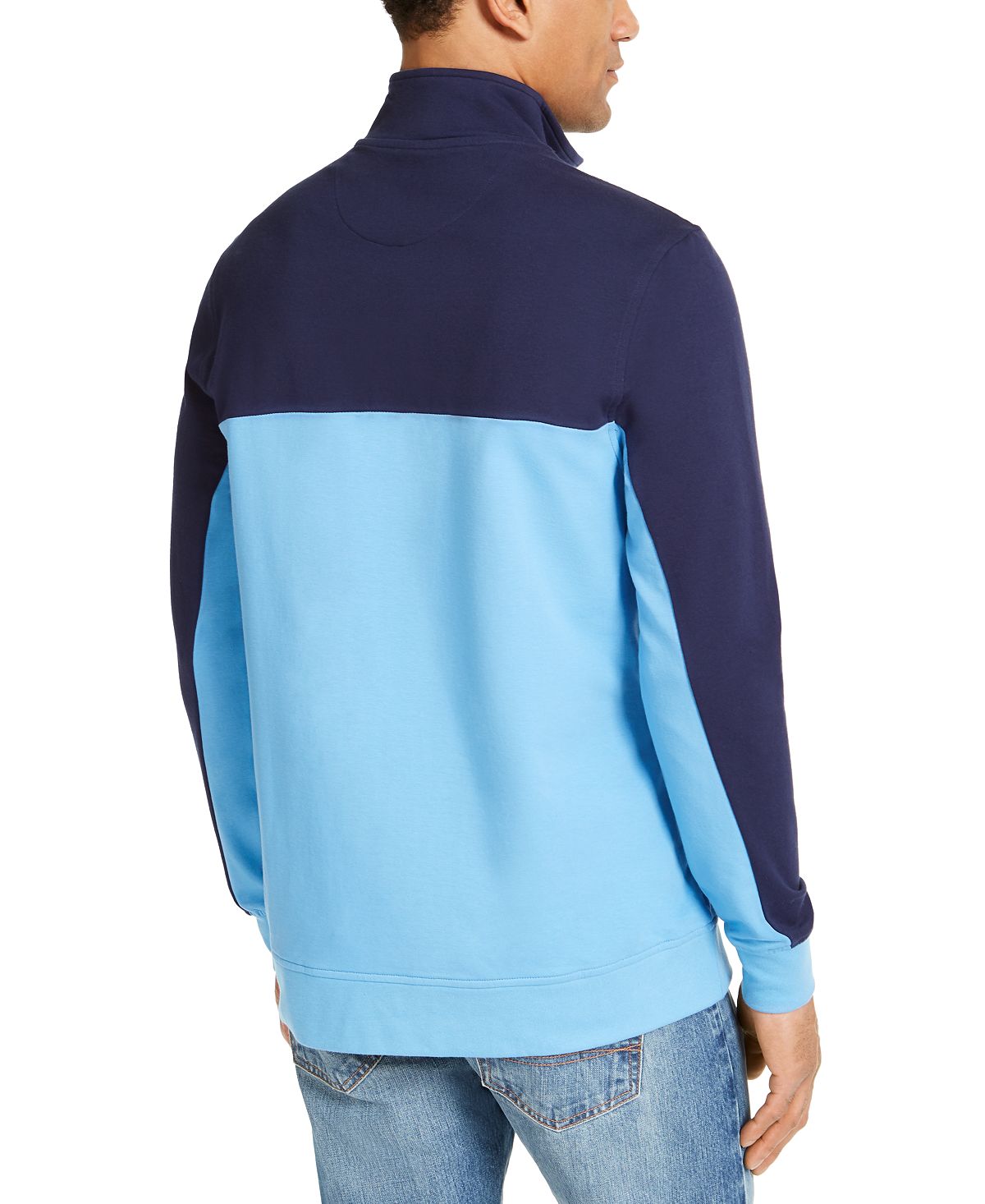 Pull over contemporary cool-weather style and comfort with the on-trend colorblocking and adjustable quarter-zip collar of this soft sweatshirt from Club Room.Regular fit; Mock collar; 1/4-zip front closure; Colorblocked styling; ribbed-knit cuffs and hem Cotton/spandex; Machine washable; Imported