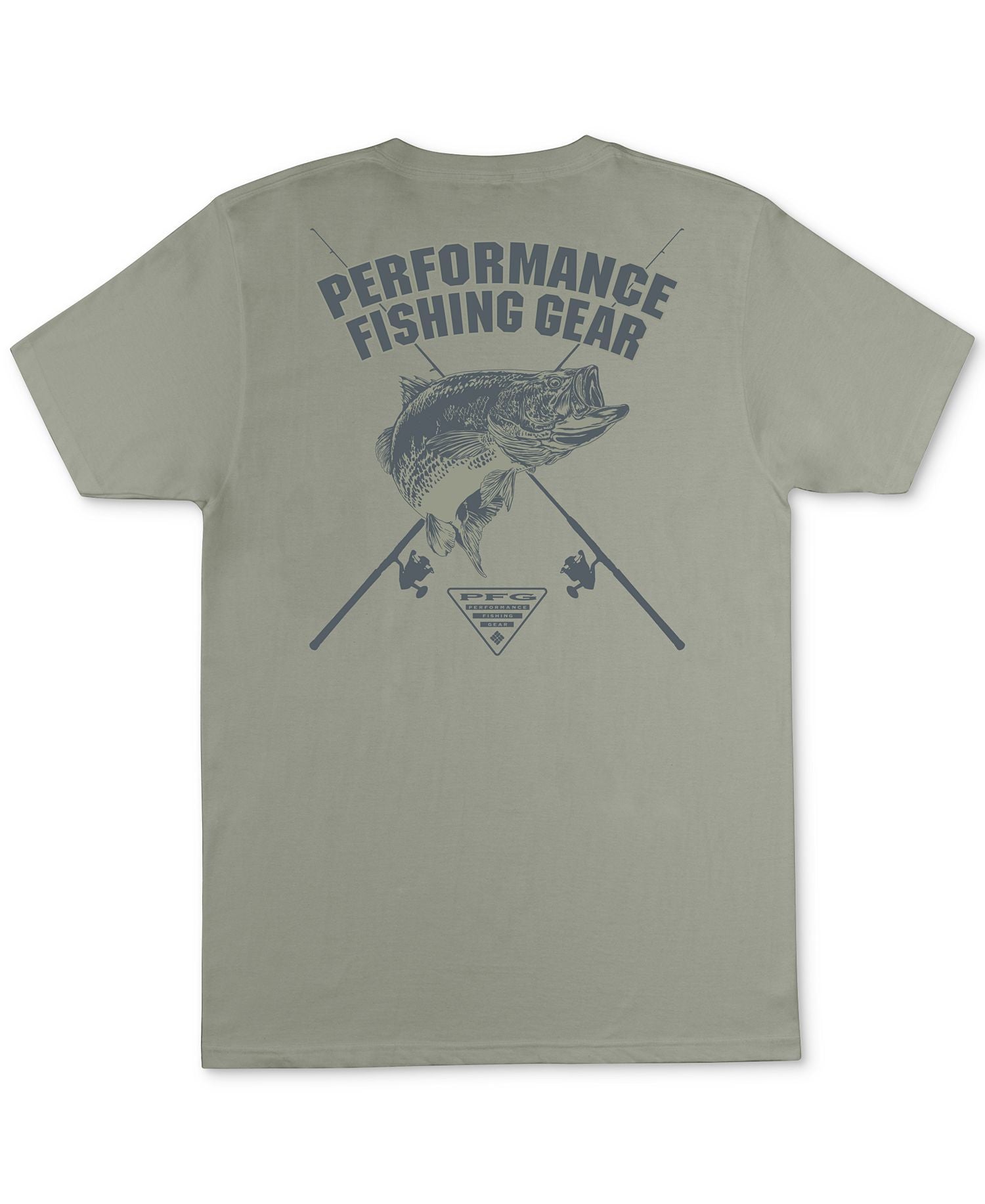 Anglers reel-y do it better in a cotton crewneck T-shirt from Columbia with a bass fishing graphic print on the back.