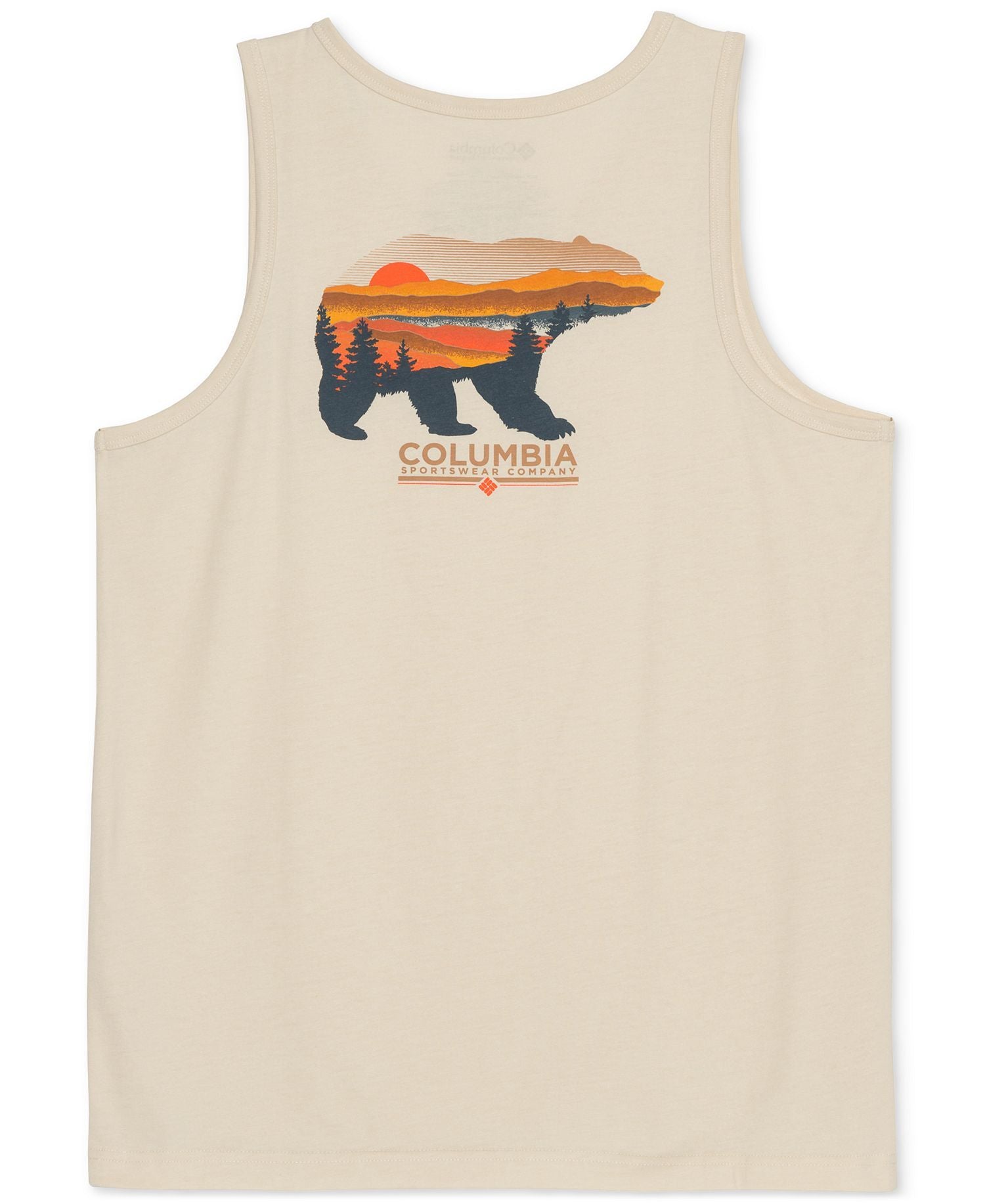 Comfy in cotton this crewneck tank top from Columbia features graphic prints at the front and back.