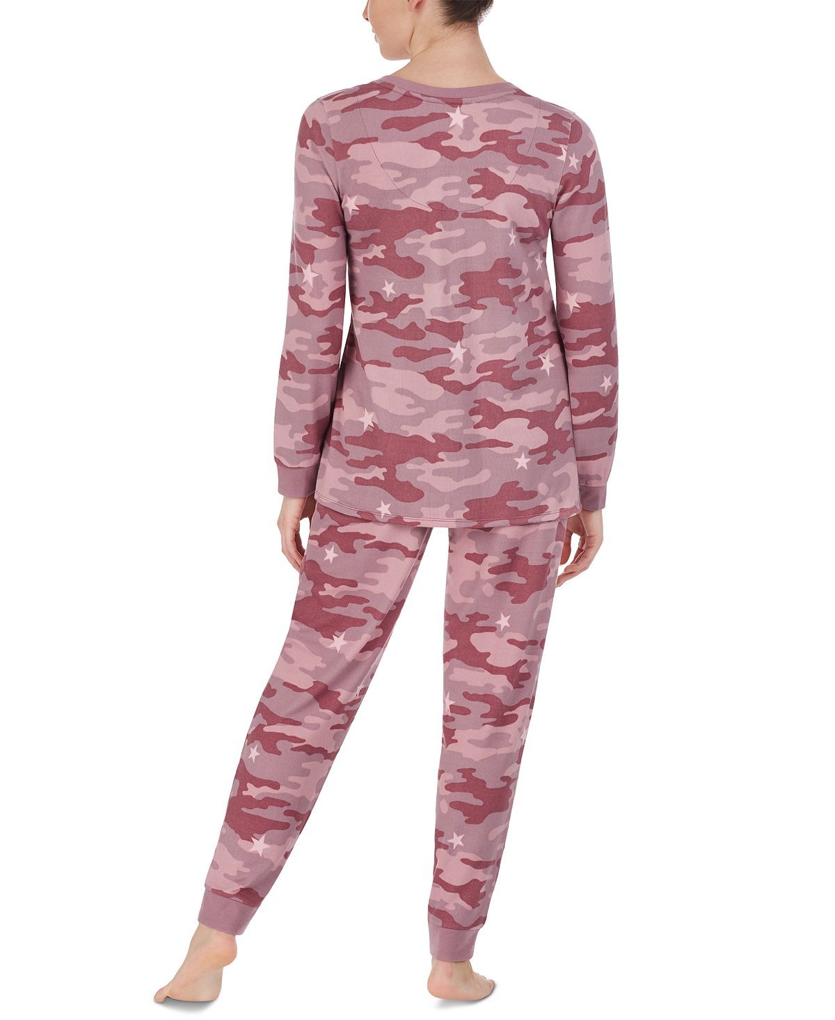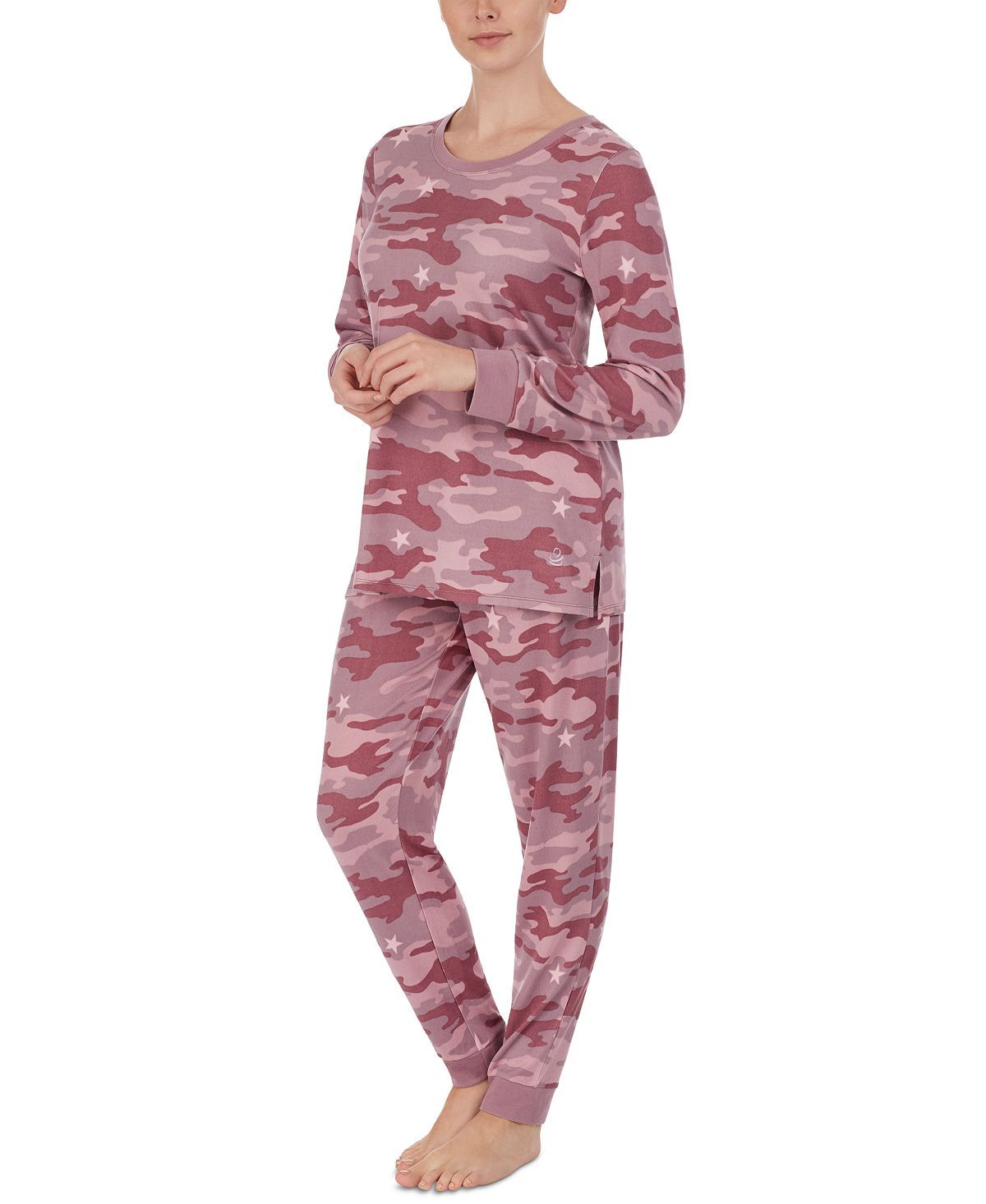 A modern printed spin on classic knit comfort this loungewear top and jogger pants from Cuddl Duds sleep in snuggly style.Top: hits at hip knit fabric scoop neck with ribbed band pullover style long sleeves with ribbed cuffs; Pants: hits at ankle knit fabric ribbed jogger cuffs drawstring waistband; Polyester/spandex; Machine washable; Imported