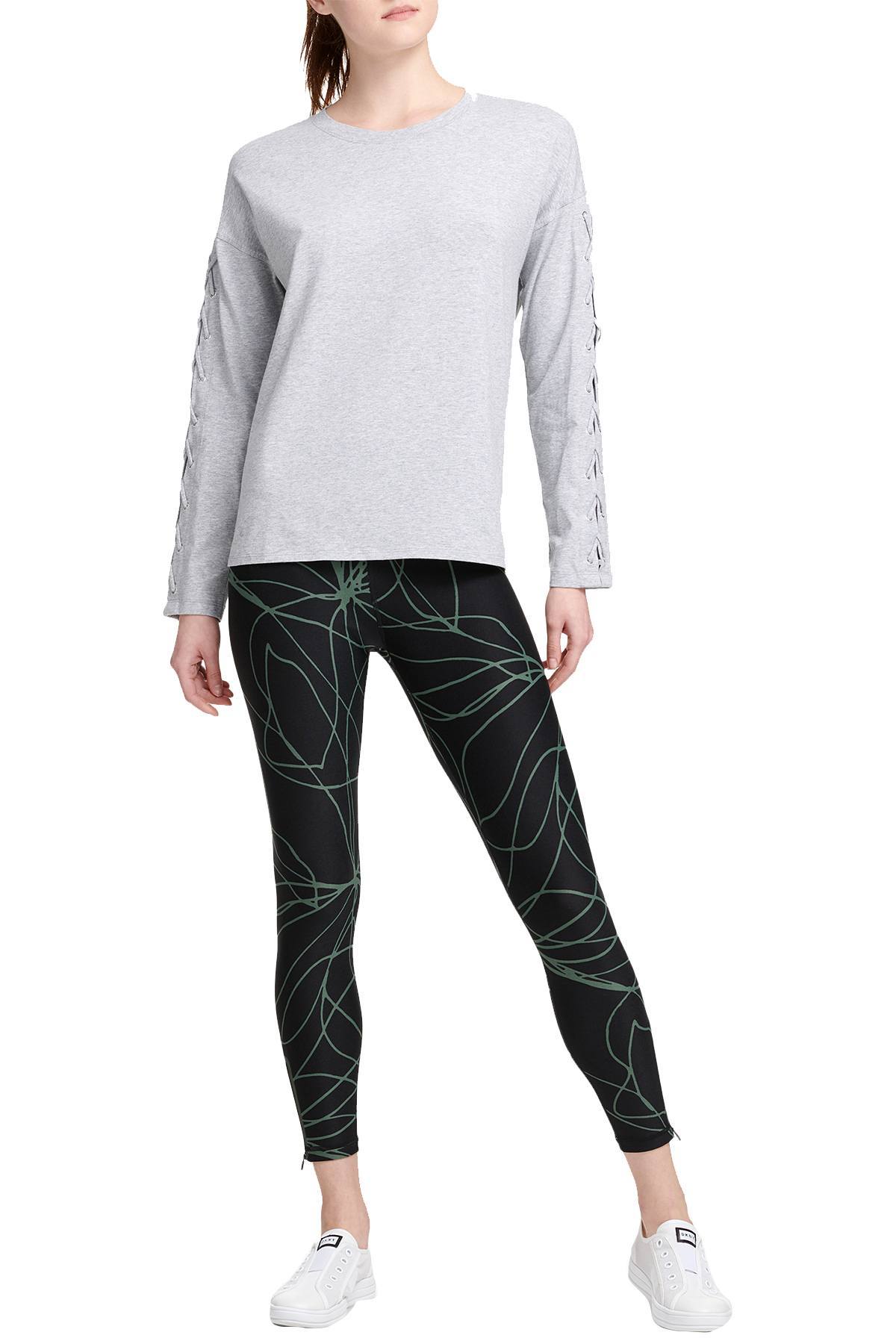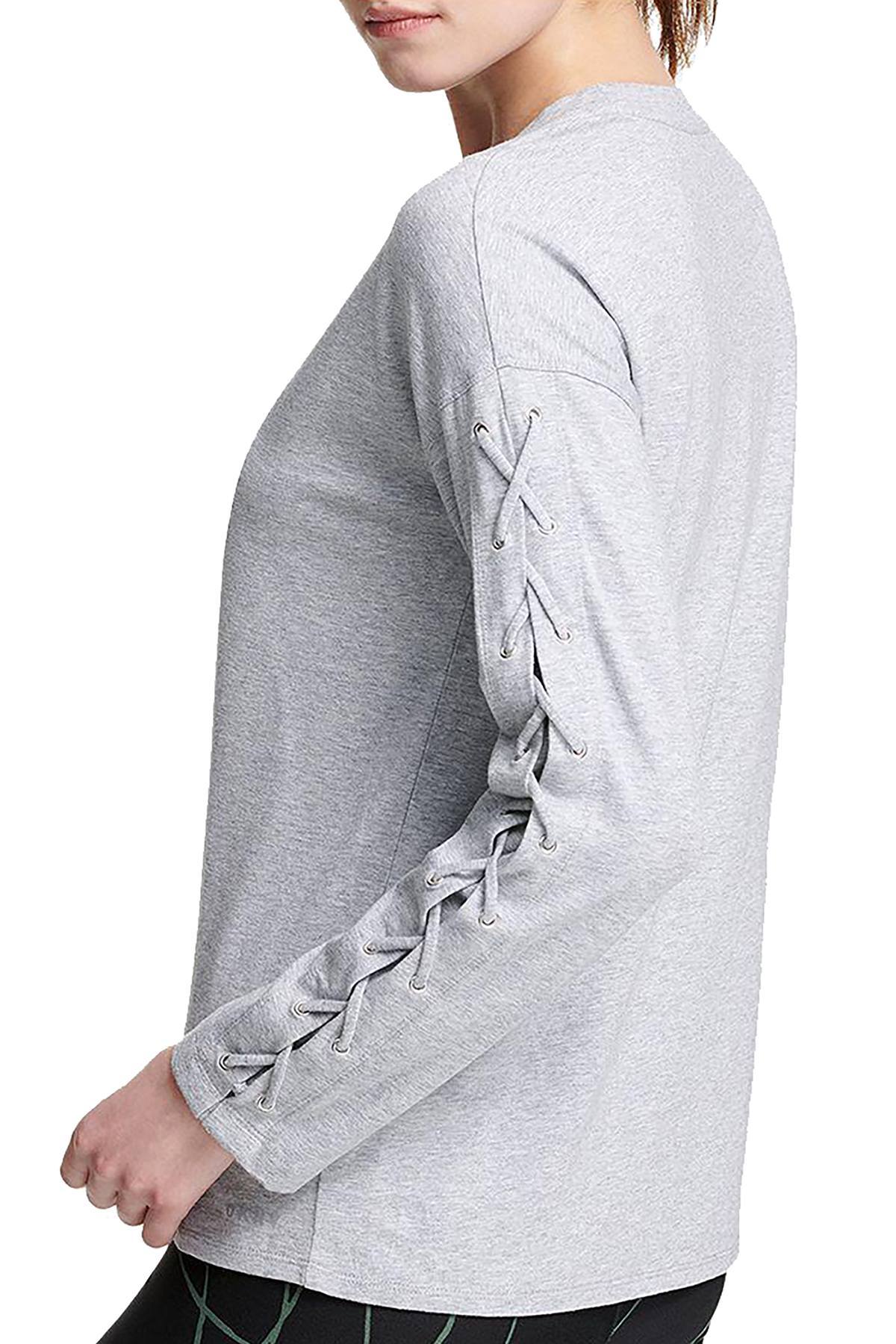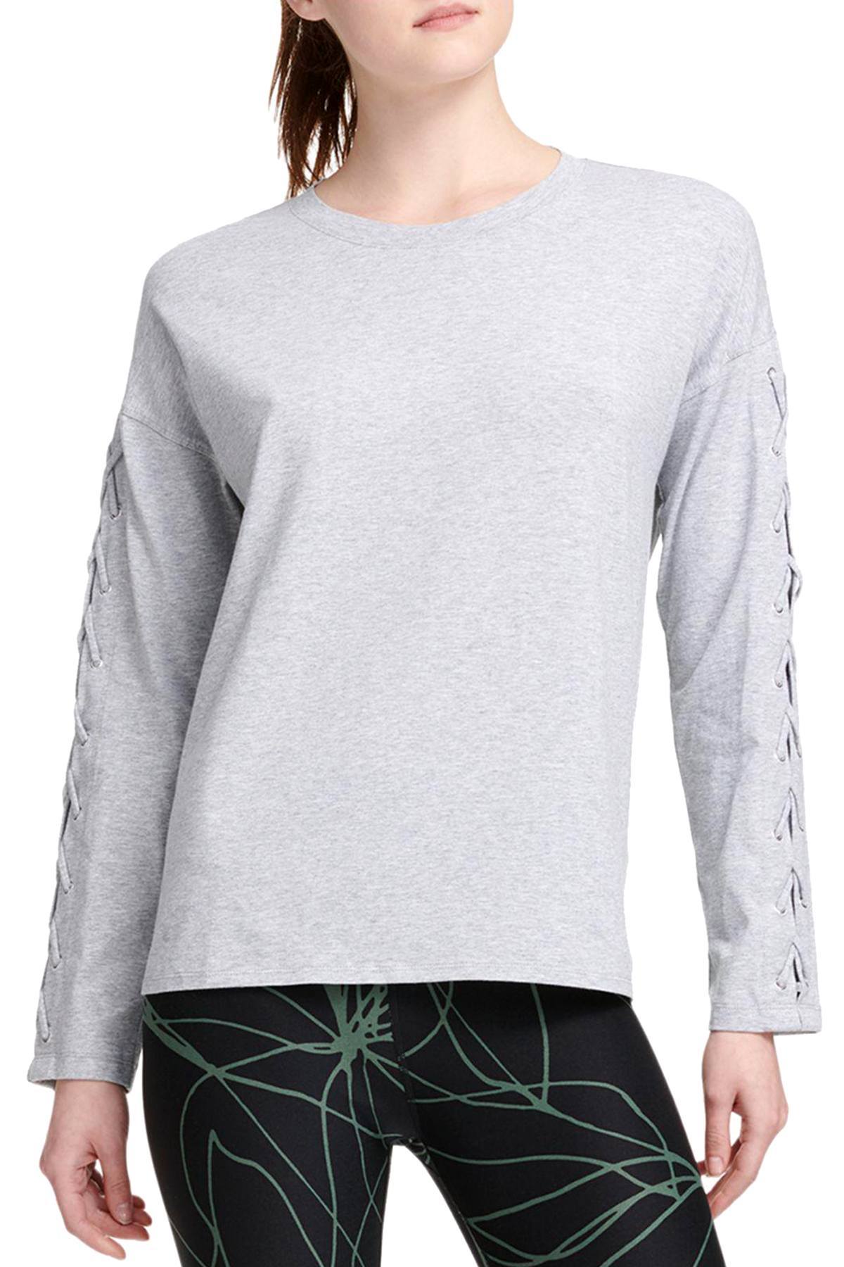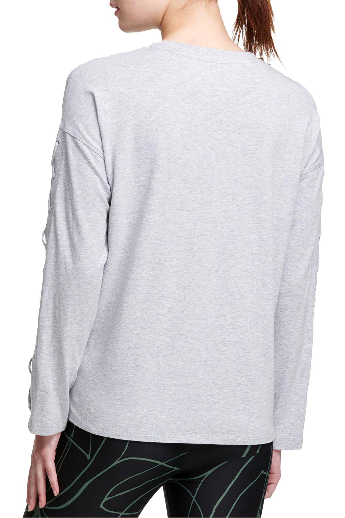 DKNY Sport Pearl Grey Heather Long Lace-Up Sleeves Modal T-Shirt