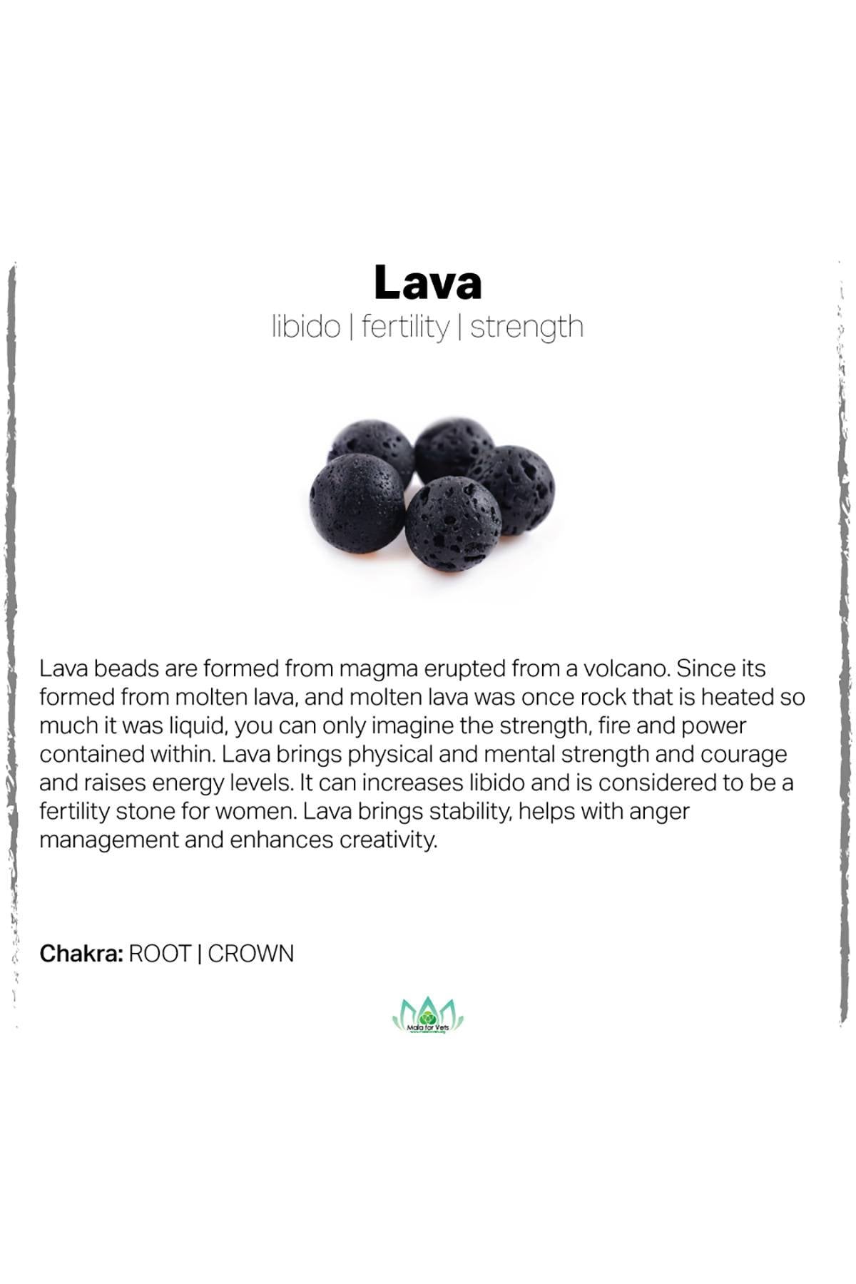 - Lava Stone is a grounding stone that strengthens one's connection to Mother Earth. It gives strength and courage, allowing stability through times of change.