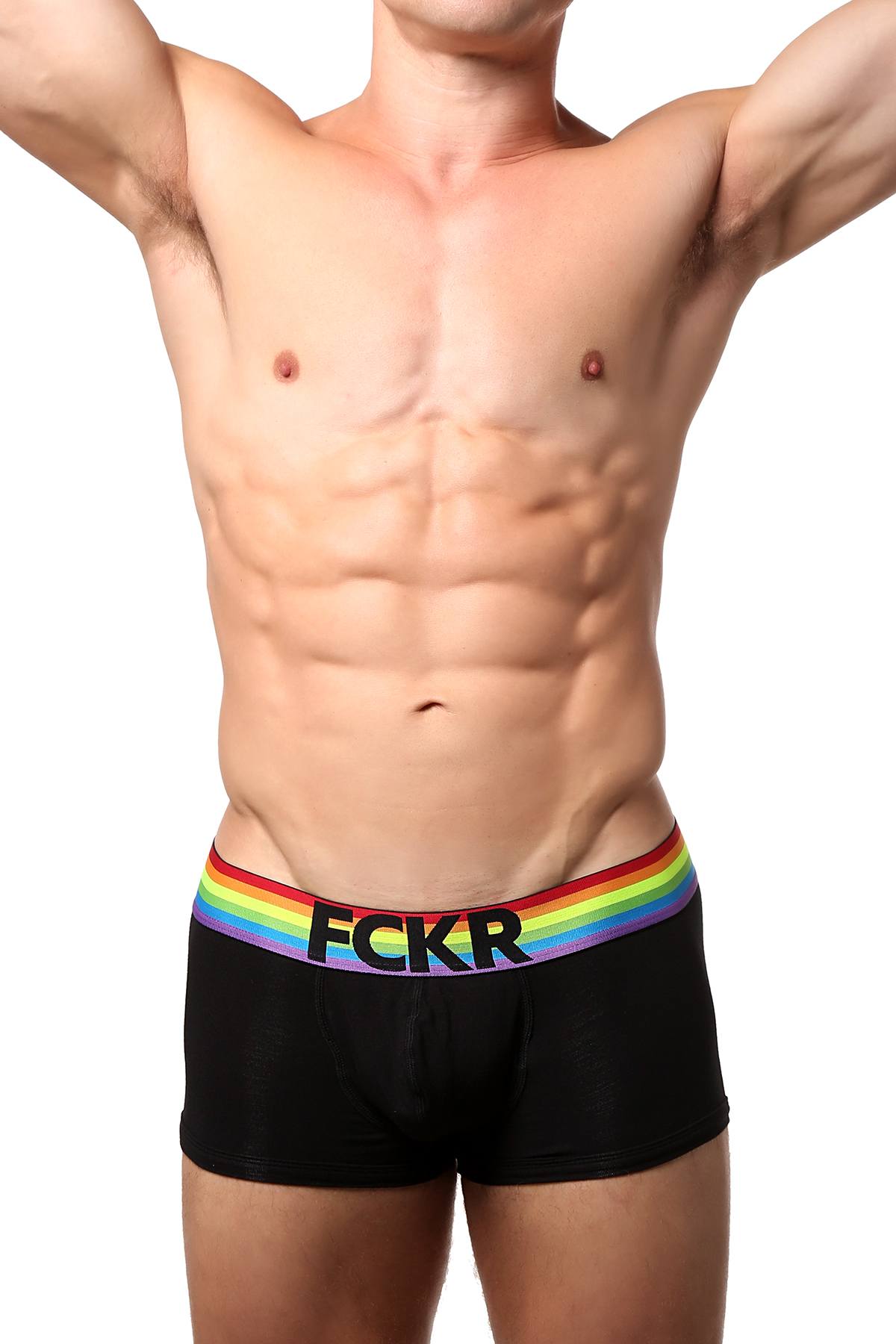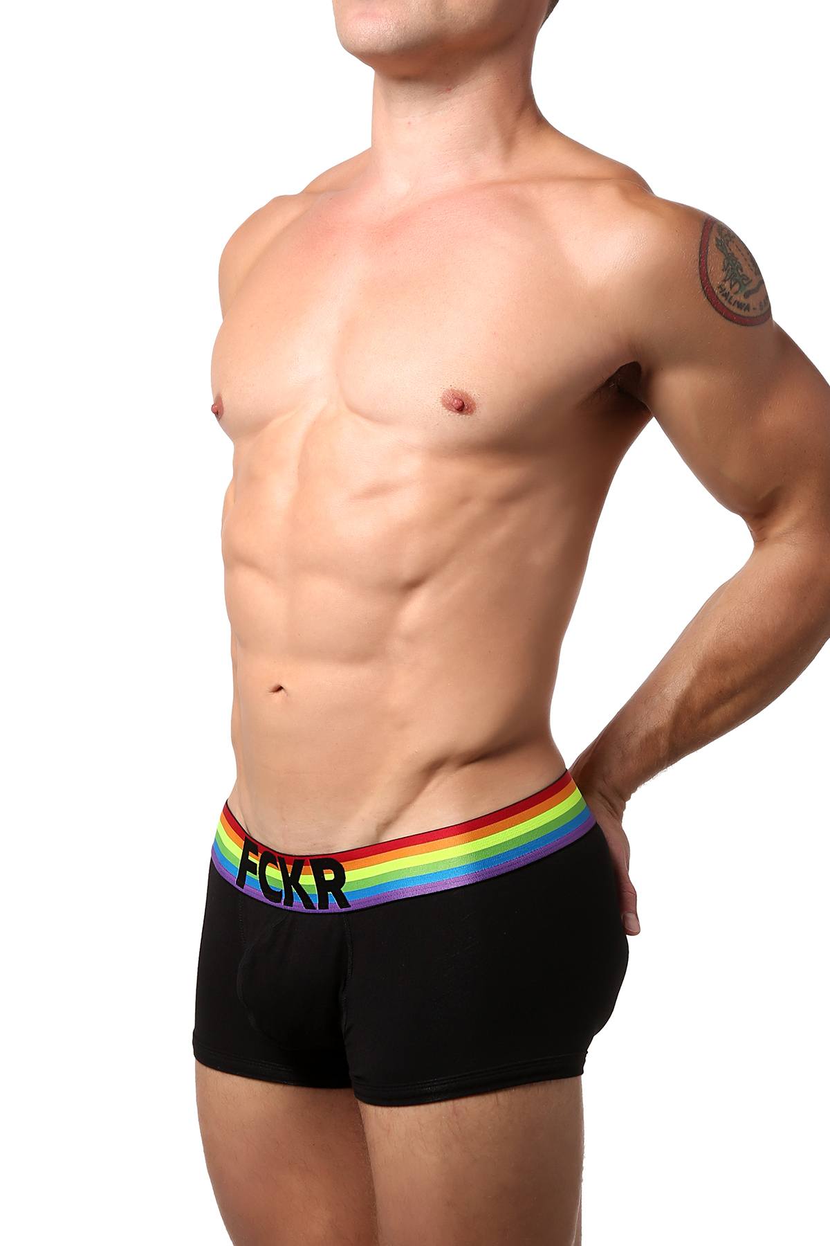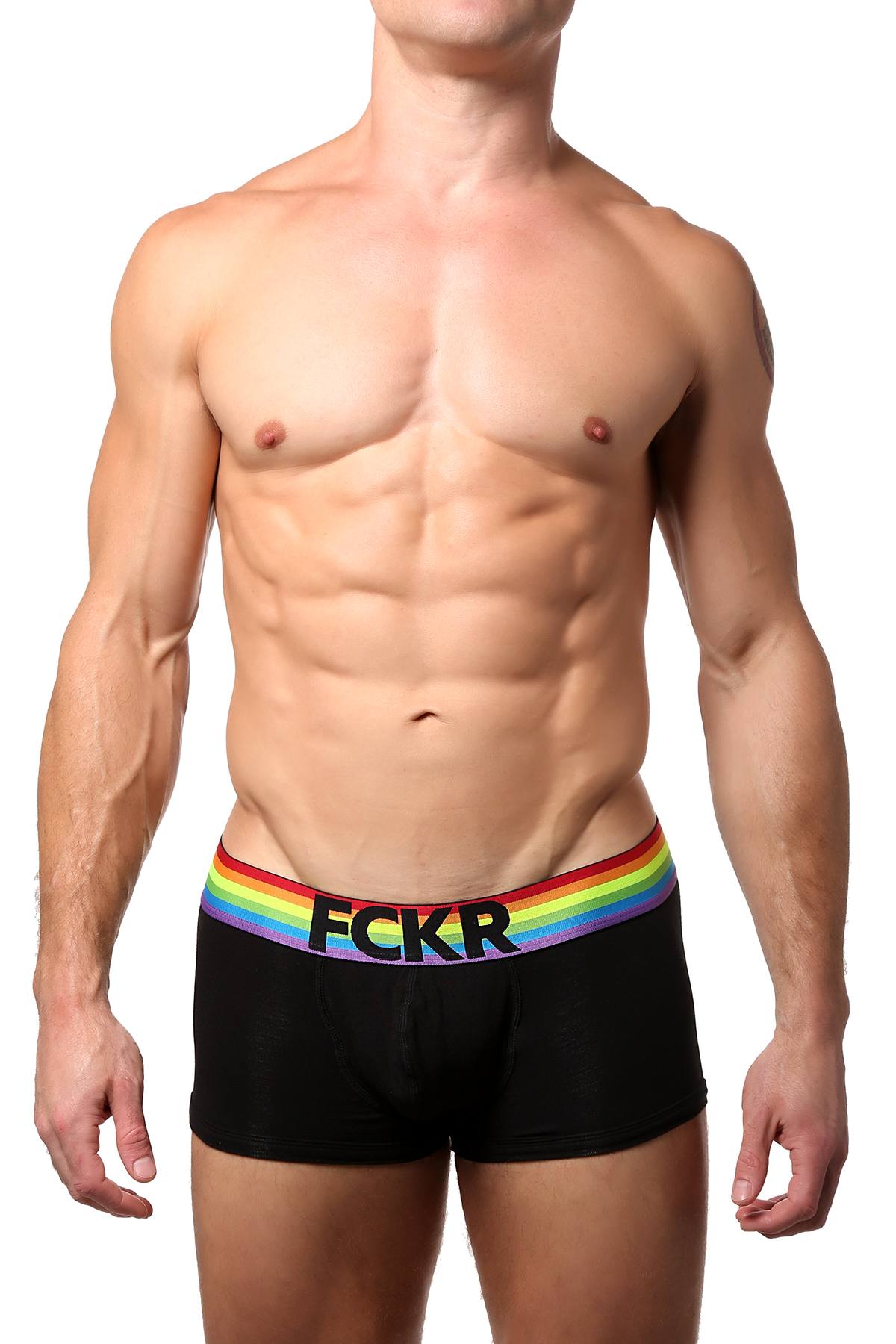 Introducing FCKR “always ready for action” Pride Edition Trunks. Crafted of a supple, scintillatingly soft cotton fabric that shows off every inch of your best assets. Featuring a contrasting rainbow waistband and our amp-up pouch technology to maximize comfort, and give you a lift where it counts. It is a simple yet effective enhancement to your underwear that eliminates uncomfortable friction during exercise or outdoor activities and keeps everything in place so you’ll always be ready for action!