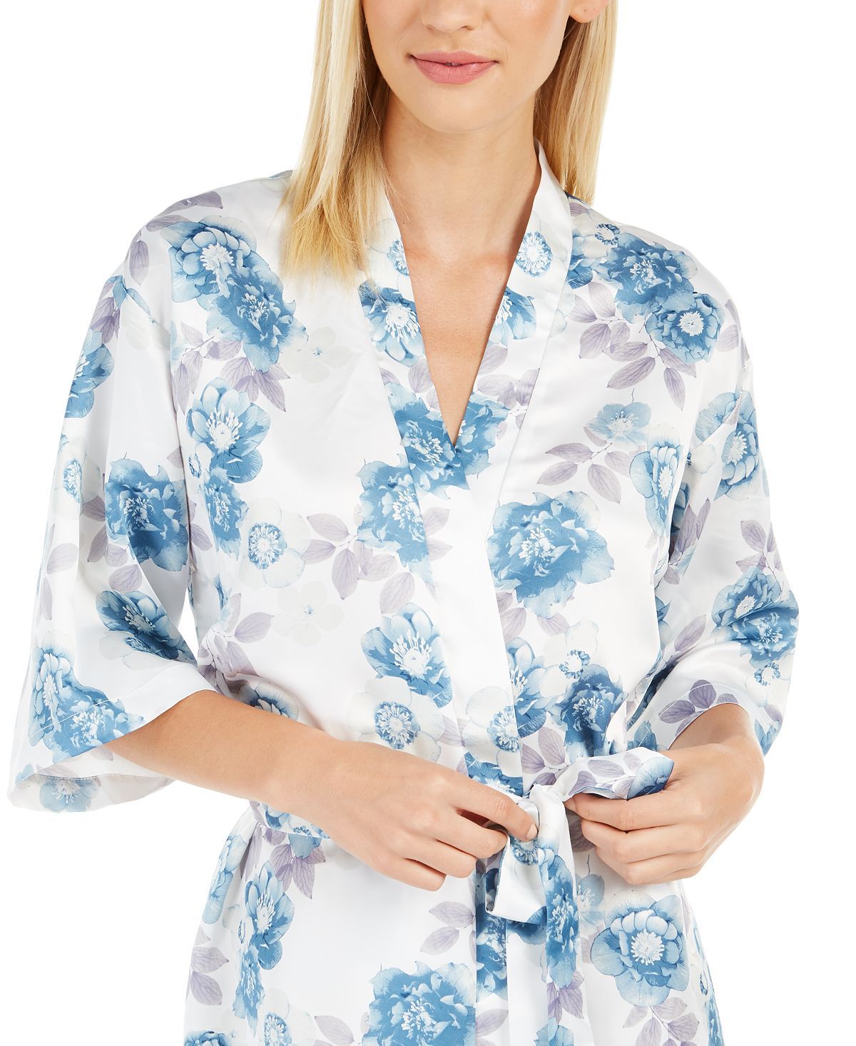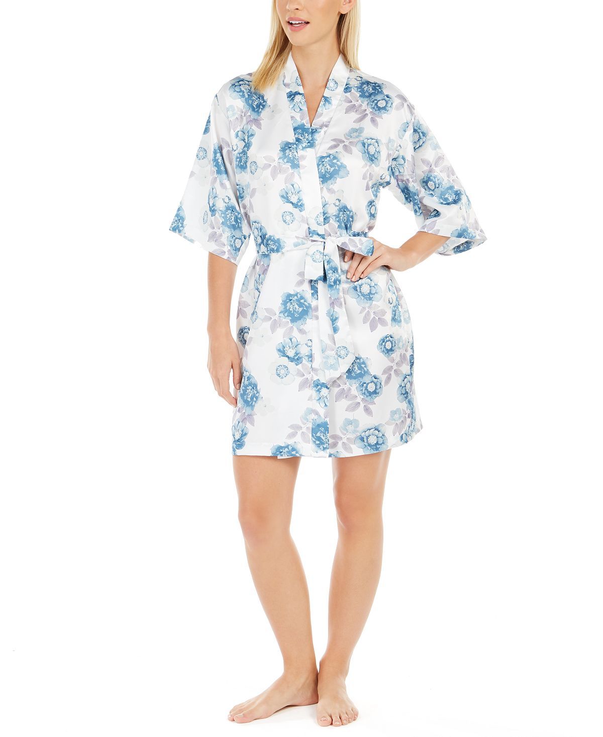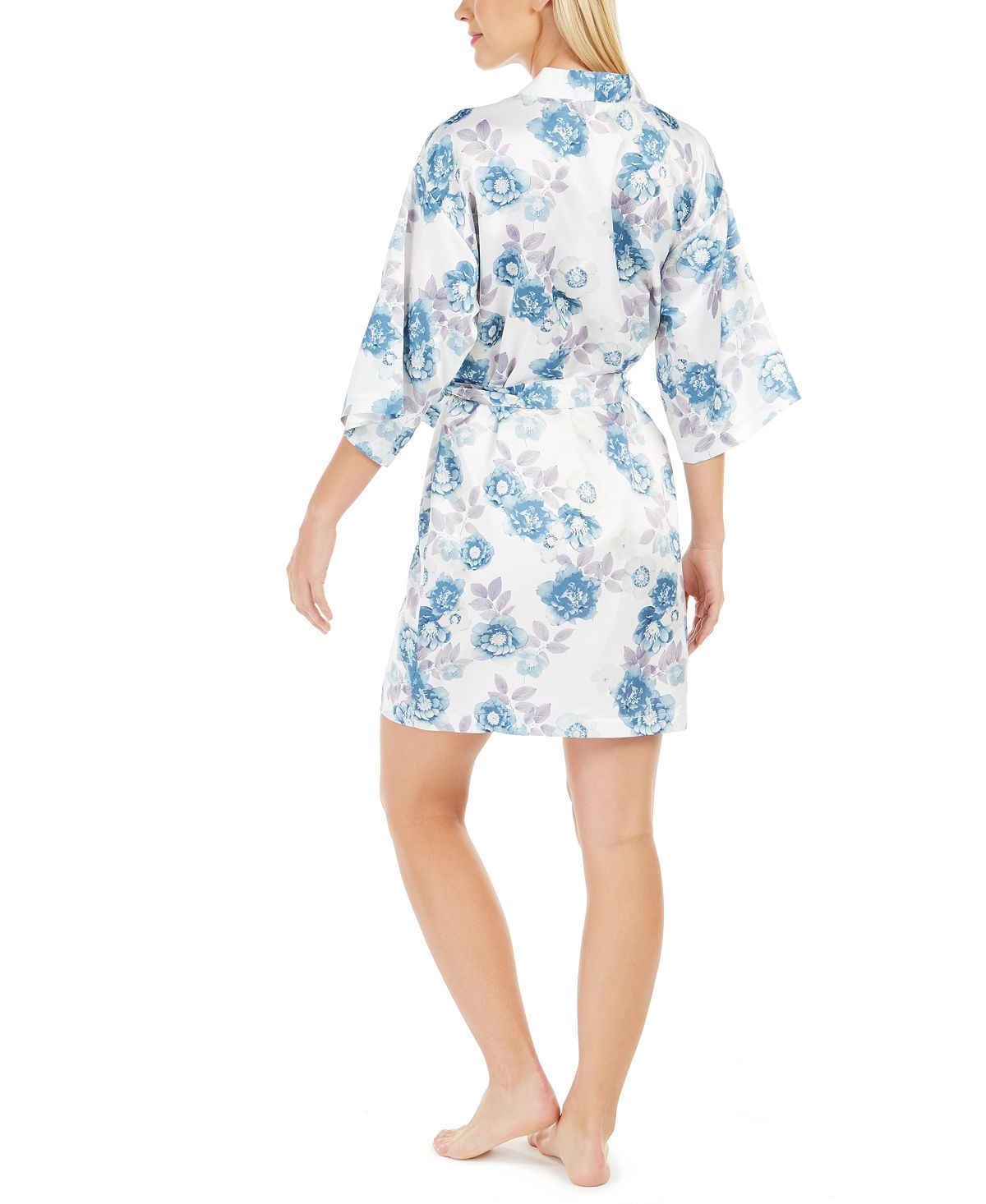 Effortlessly gorgeous this Flora by Flora Nikrooz short robe features a classic wrap design and a beautiful print.Length: Approx. 36" long; Closure: Self-tie belt; Sleeve Length: 3/4-sleeves; Polyester; Hand wash; Imported