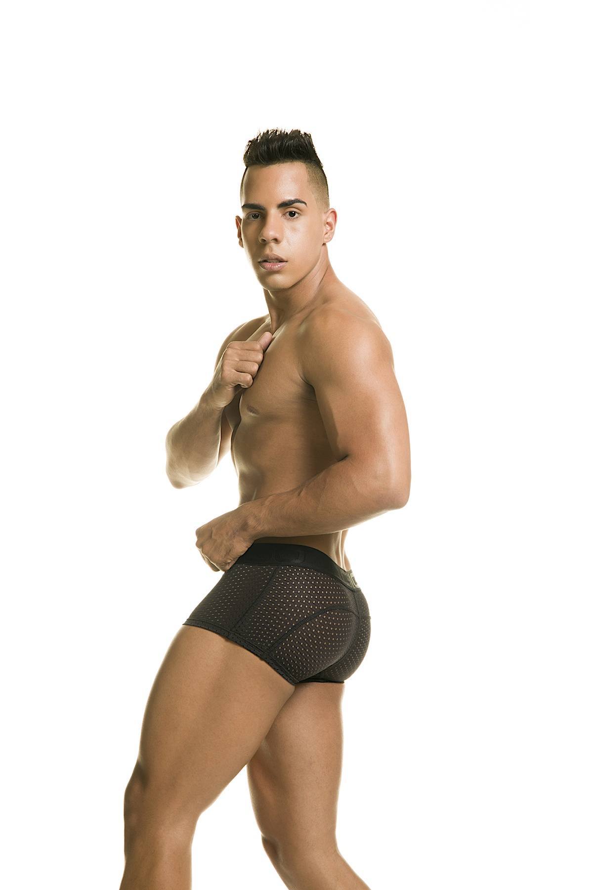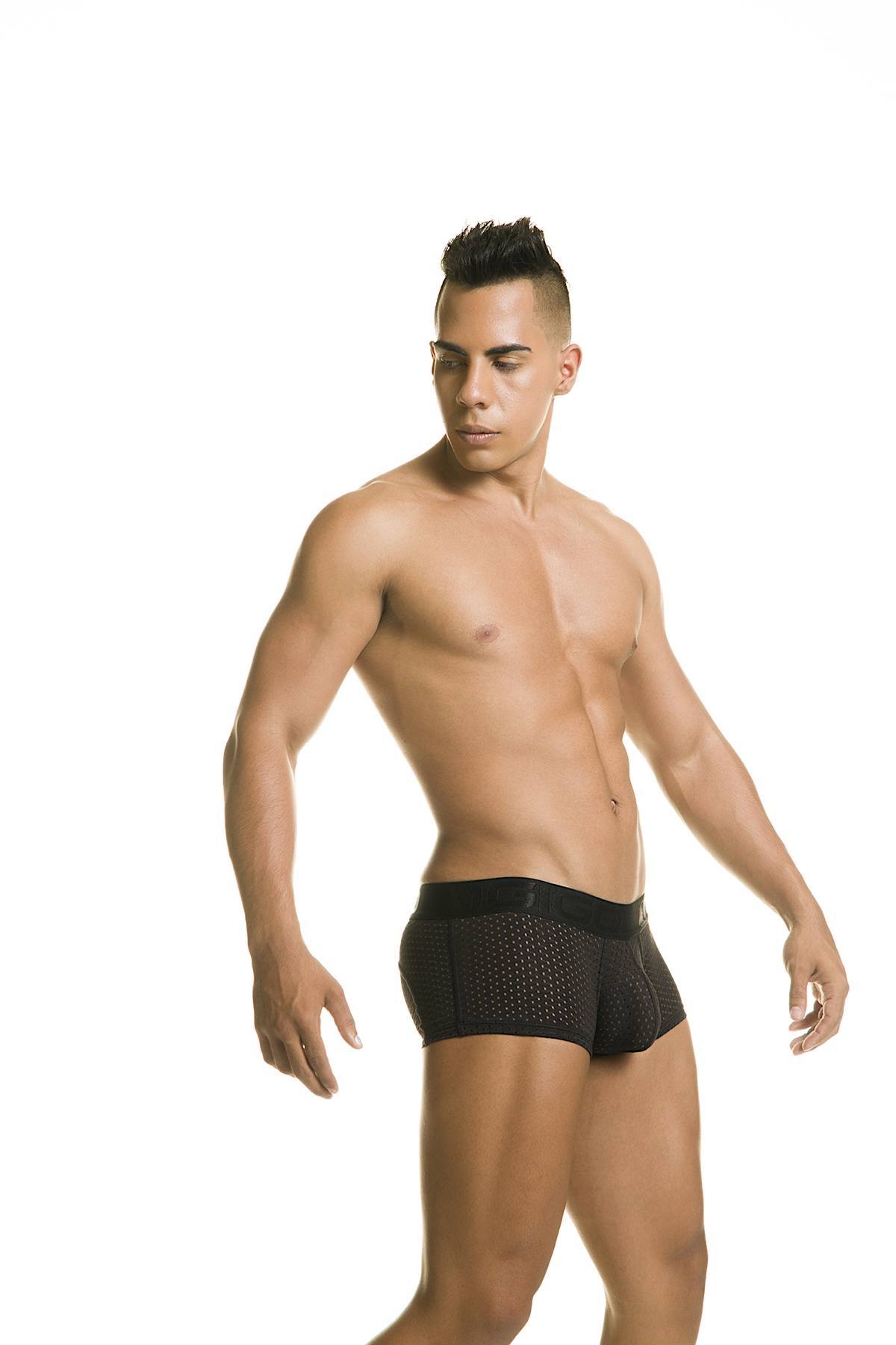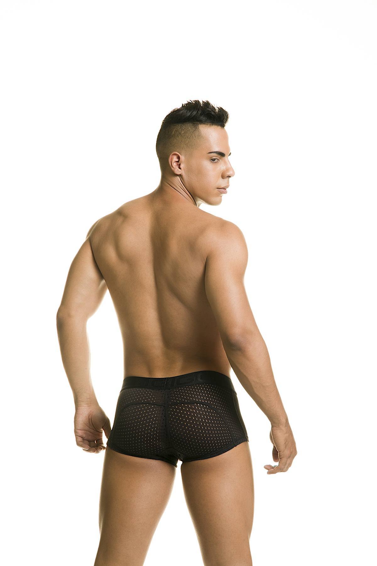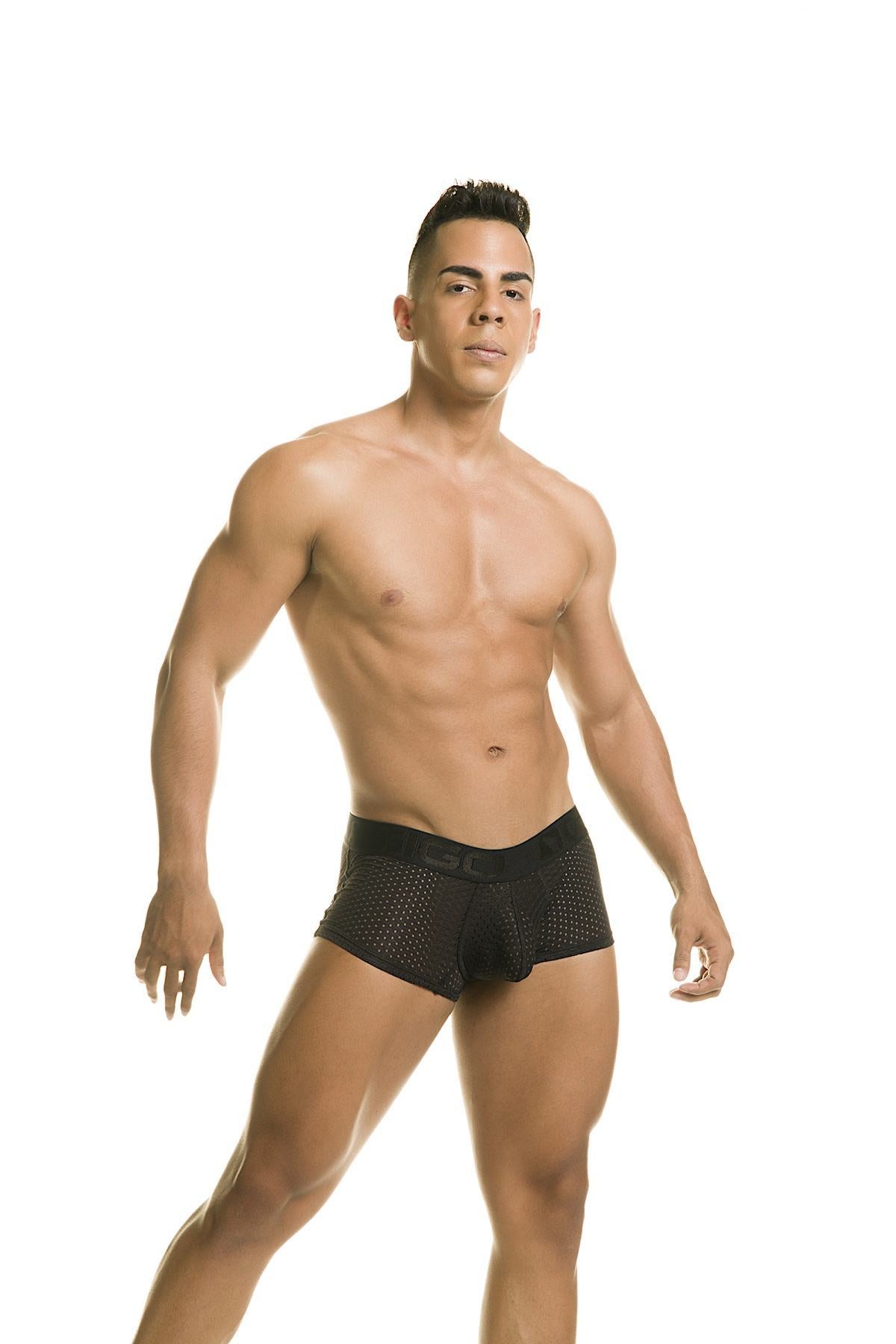 These boxer briefs from Gigo are stylish and naughty at the same time! They feature a soft stretch fabric that hugs your body and accentuates your best assets - front and back! Roomy anatomical pouch for extra support. Made with all-around single-layered mesh fabrication for added sexiness and comfort. Special design to the back to make those cakes look even bigger!