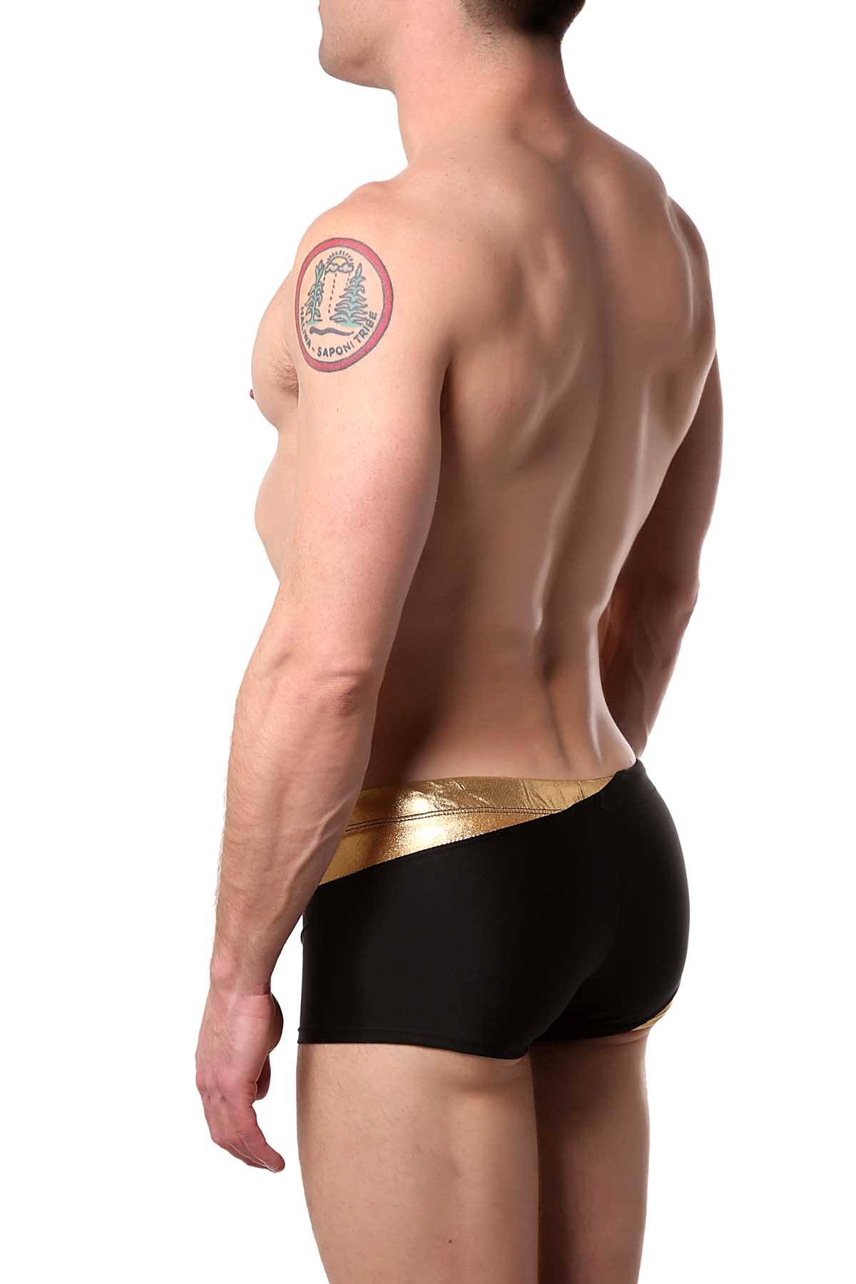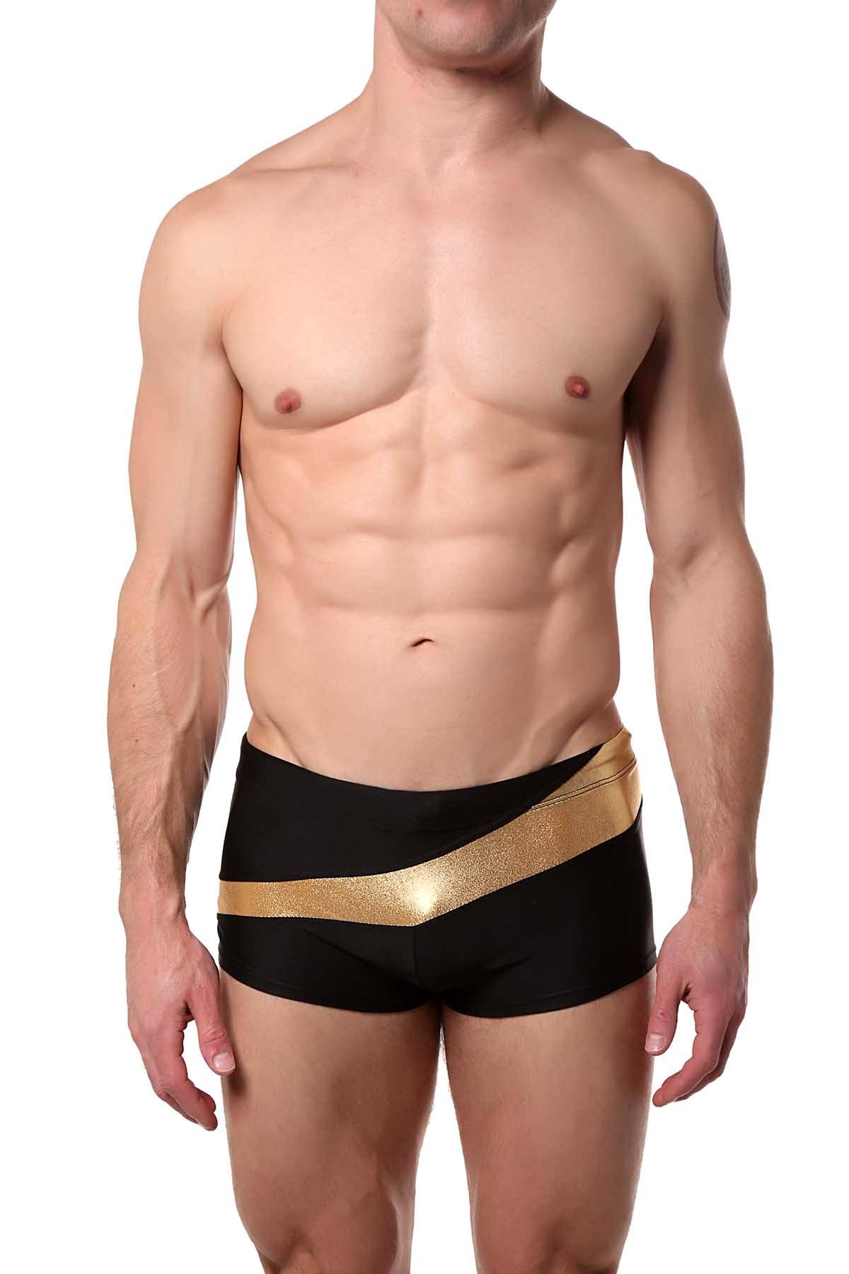 HardCore by GoSoftwear Black/Gold Santorini Square-Cut Swim Trunk
