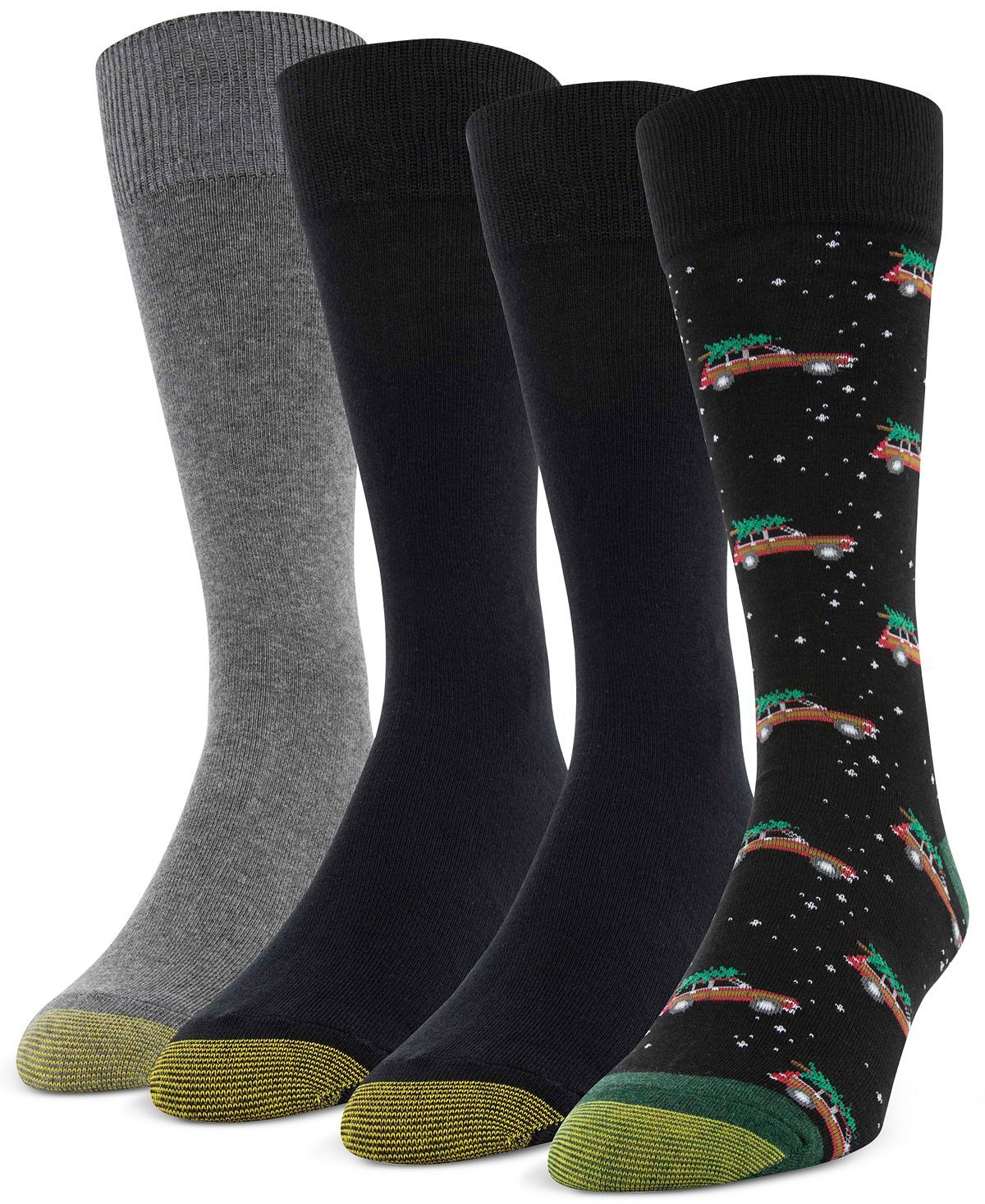 Freshen your classic dress and holiday styles with the novelty station wagon pattern and solid styles in this four-pack of exceptionally comfortable socks by Gold Toe. Four-pairs; VAPOR-TECHtechnology for moisture control; Premium soft yarns and a flat toe seam for ultimate comfort; Polyester/cotton/nylon/spandex; Machine washable; Imported
