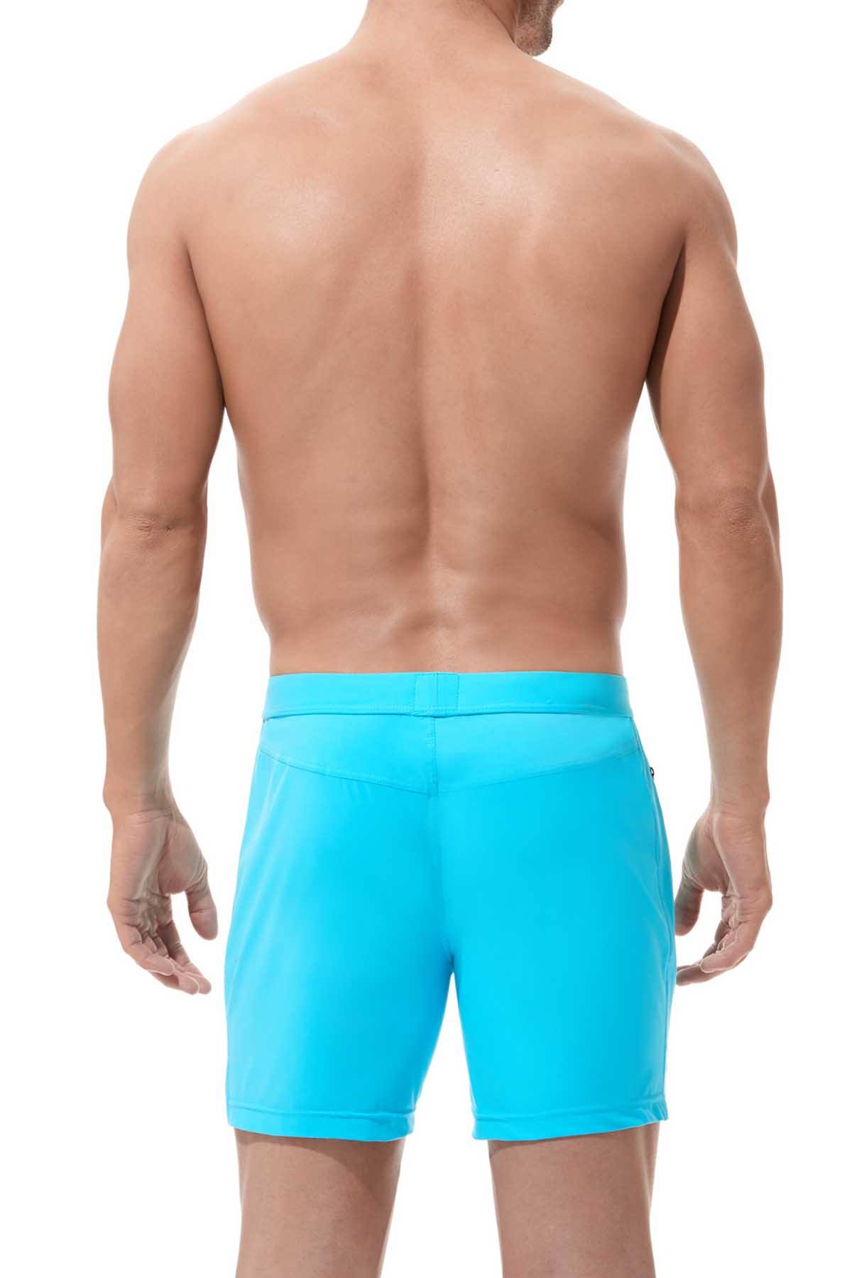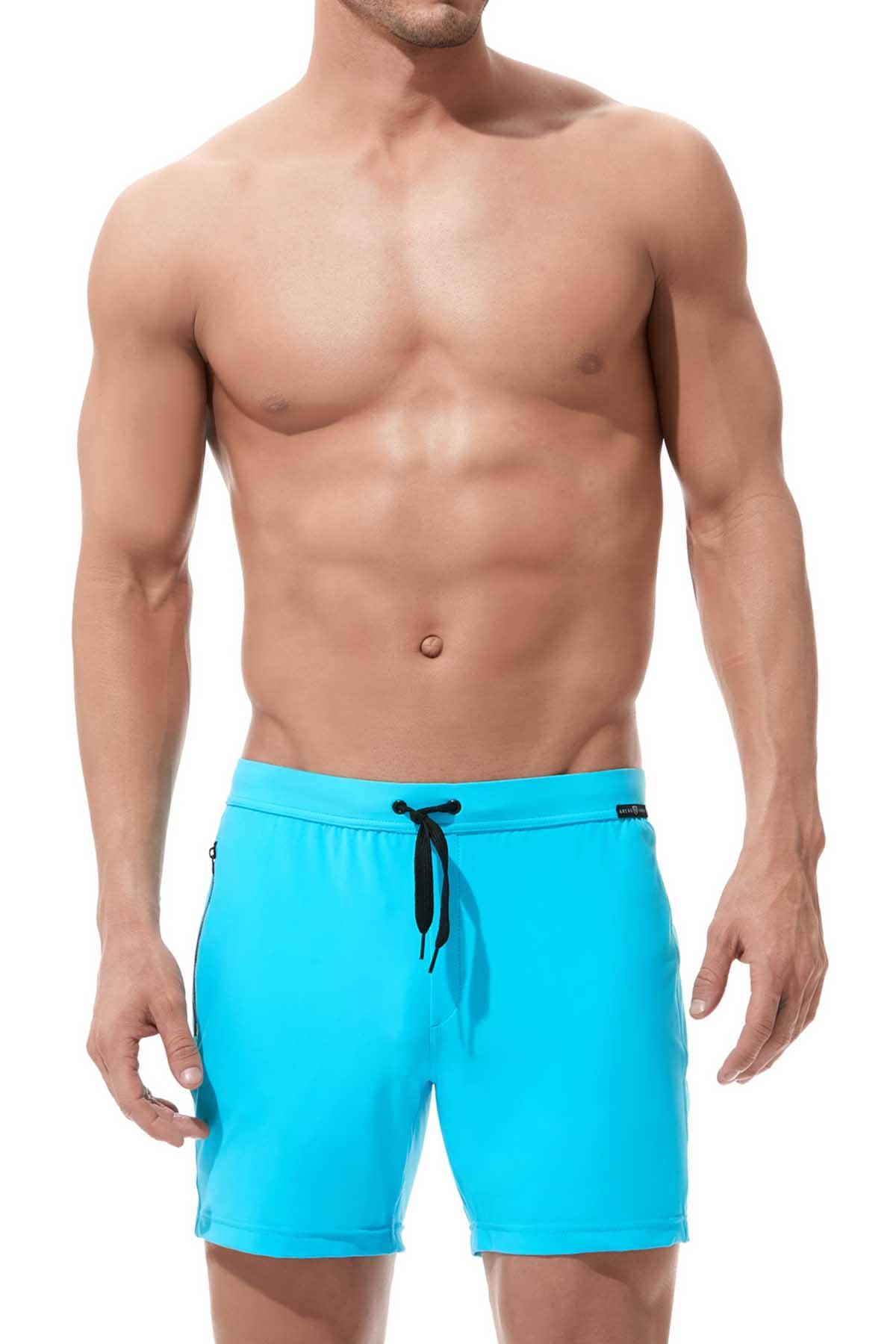 This swim short is made of soft and supple polyamide with a matte finish and features a covered elastic waist with adjustable drawstrings, full lining and a zipper pocket with mesh lining.