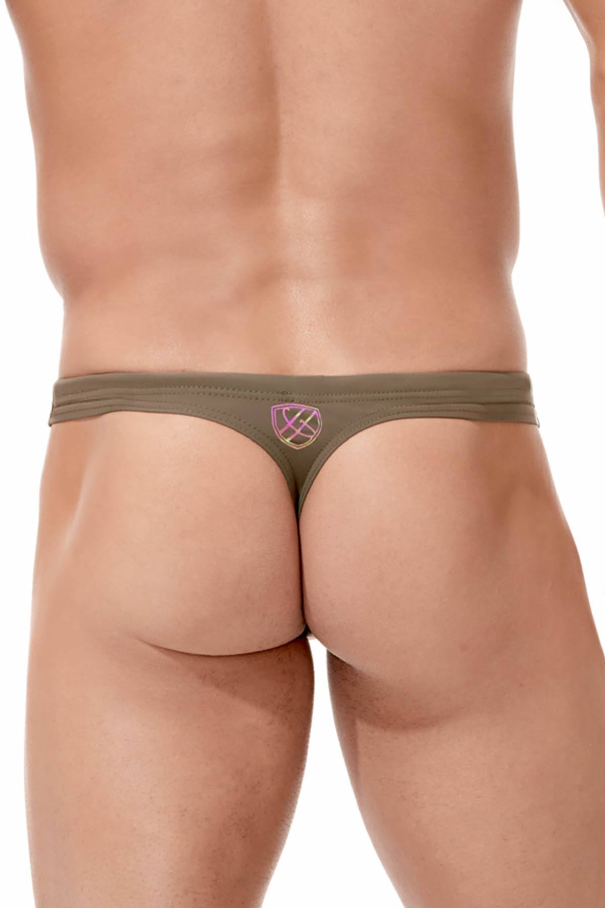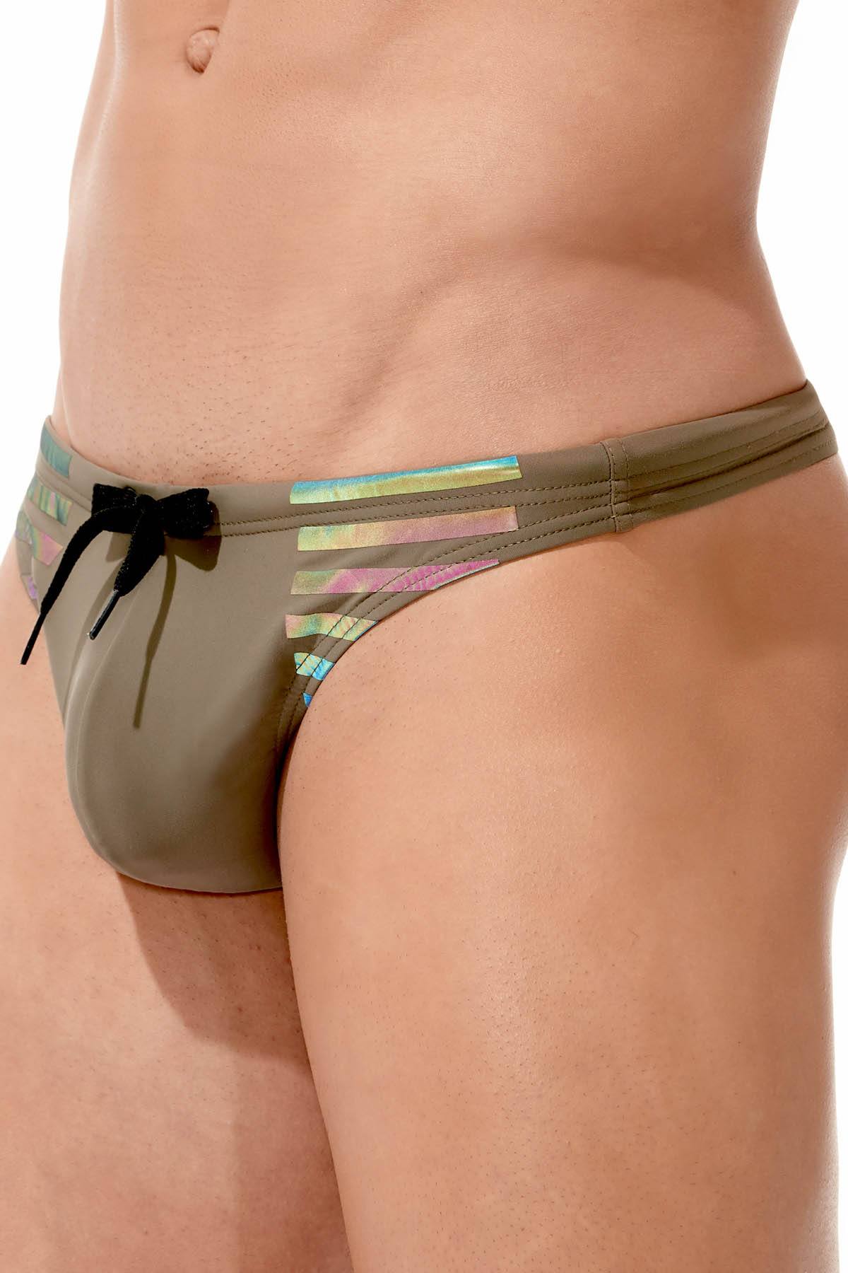 This swim thong is made of soft and supple polyamide and features iridescent vinyl bars at sides for a sophisticated dash of luxe swagger.