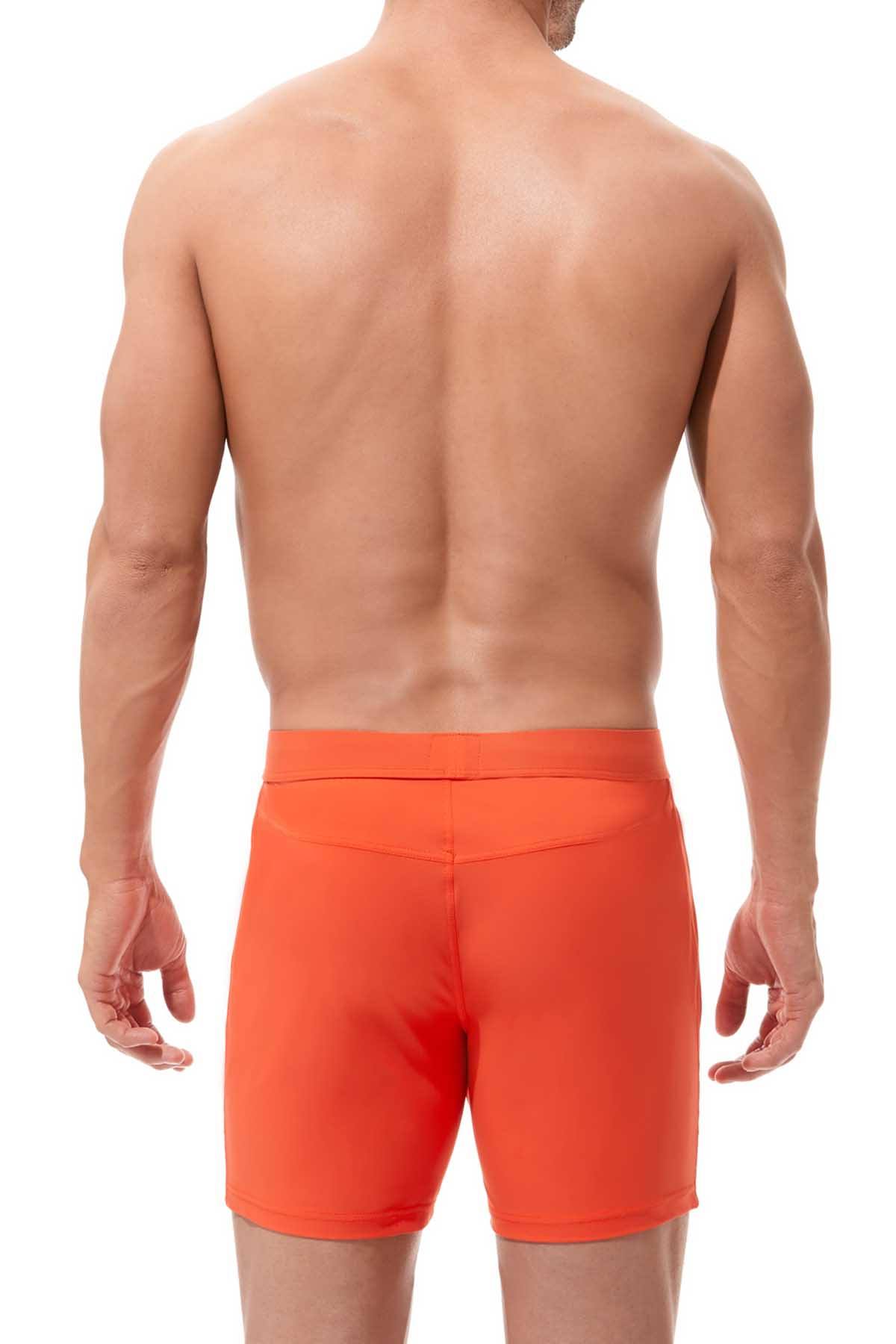This swim short is made of soft and supple polyamide with a matte finish and features a covered elastic waist with adjustable drawstrings, full lining and a zipper pocket with mesh lining.