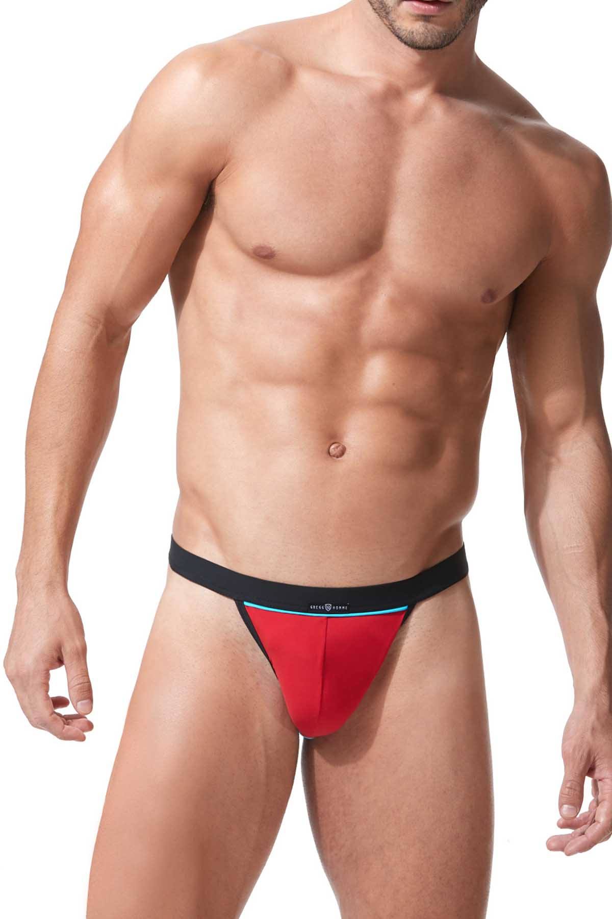 Featuring color blocking on the body, the Cruising swim thong by Gregg Homme is made of ultra-soft technical fabric with a matte finish and includes lining inside the pouch, contrast panels and trim, and a covered elastic waistband with the Gregg Homme logo displayed at center front.