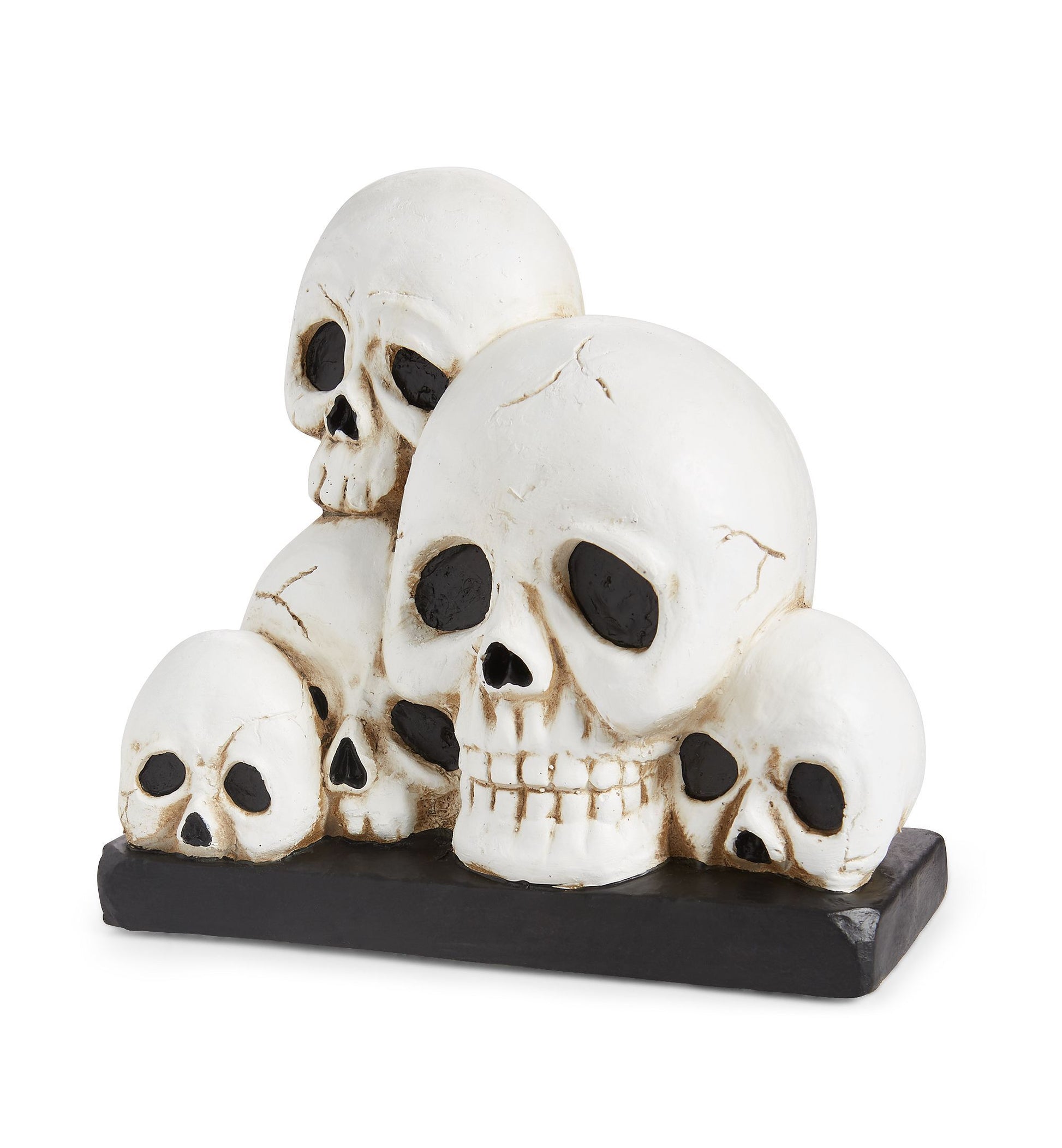 Stacking up in spooky style, Holiday Lane's skull decoration adds a touch of scary flair to Halloween decor.