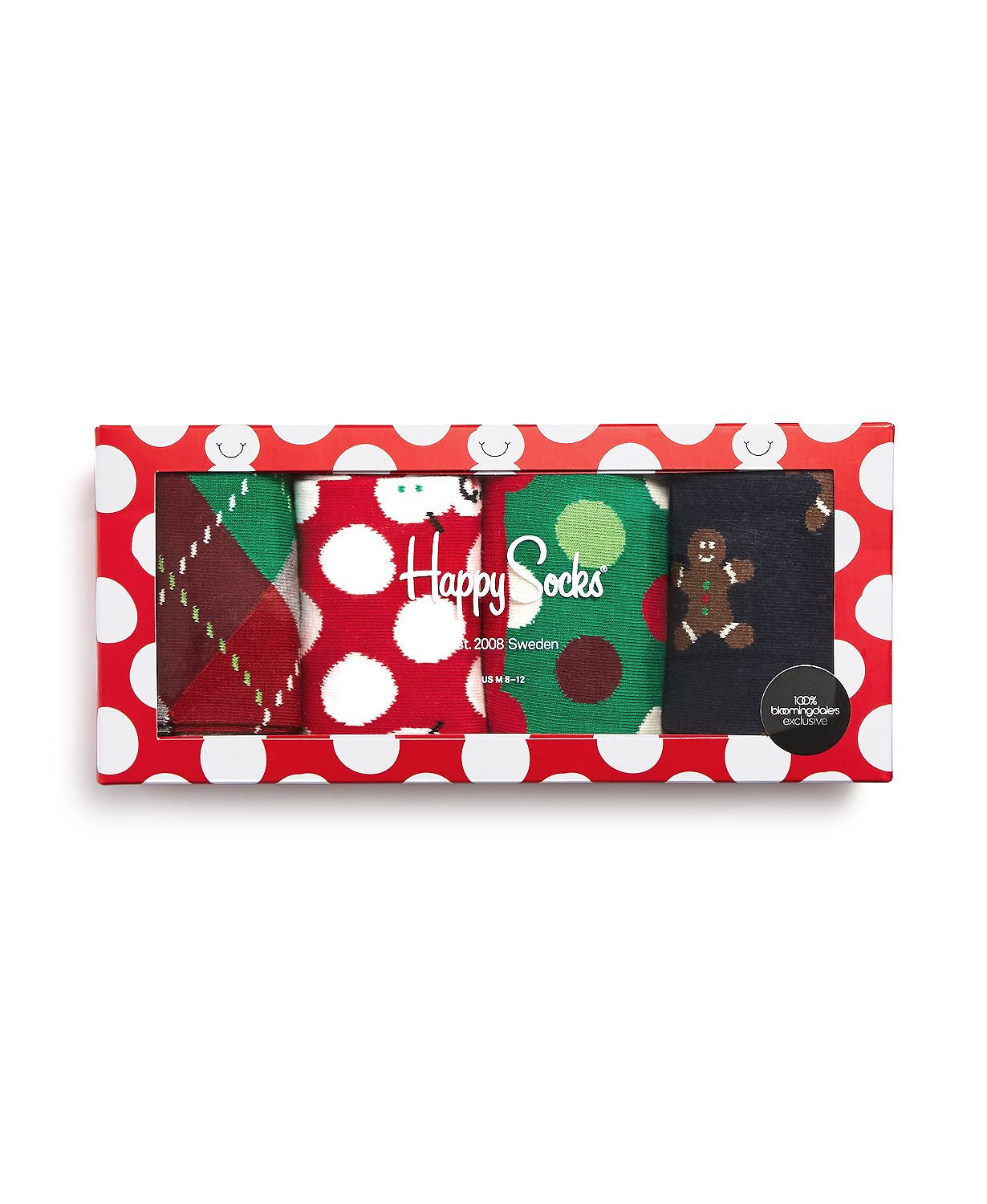 Box includes four pairs of socks: gingerbread-man print argyle print dot print snowman print; Calf height; Ribbed cuffs; Reinforced toe and heel; Comes with gift box; Made in Turkey; 3495715