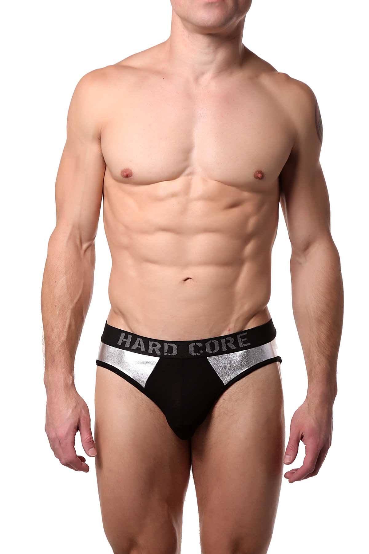 - The HARD CORE GOLD jock brief is created from rayon/spandex fabric along with silver metallic panel insets for a unique fashion forward look.